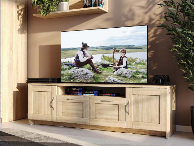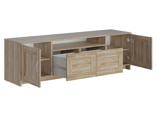ТВ-тумба Сириус станет стильным акцентом интерьера. Модель подходит для размещения монитора большой диагонали и другой мультимедийной аппаратуры. Разноплановые секции создадут просторную и удобную систему хранения.