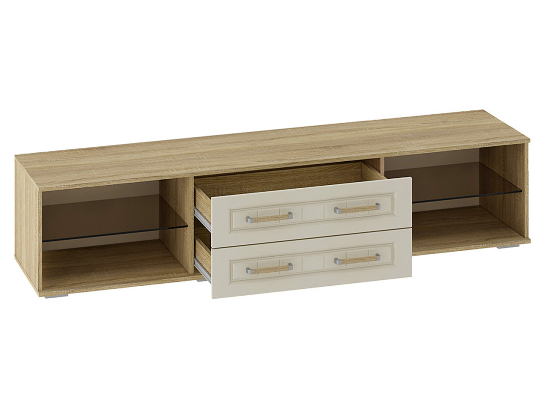 Лаконичная ТВ-тумба Маркиза легко впишется в любой классический интерьер, а также поможет создать атмосферу тепла и уюта. Изделие имеет множество открытых ниш для мультимедиа системы, а также два ящика на шариковых направляющих полного выдвижения.