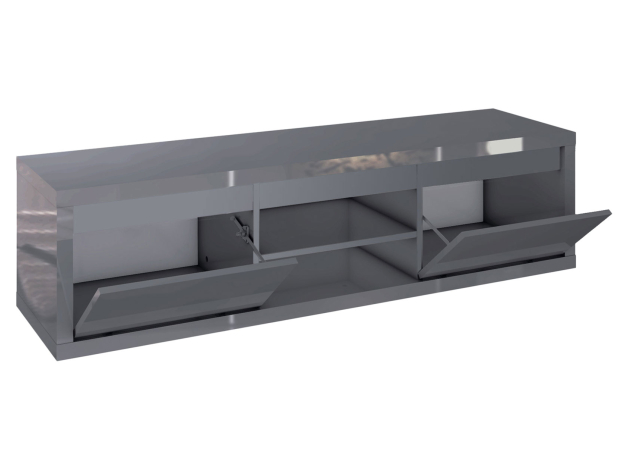 ТВ-тумба Норд — удачное дополнение современного интерьера спальни. Помимо основной функции, модель отлично справится и с задачей хранения: в конструкции предусмотрены две ниши за дверцами и невысокие полки. Лицевая поверхность покрыта глянцевым лаком с высокой отражающей способностью — превосходно рассеивает свет и визуально увеличивает помещение.