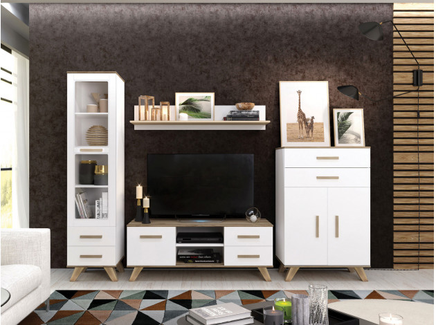 ТВ-тумба Вега Скандинавия — это сочетание стиля и практичности. Модель оснащена двумя ящиками полного выдвижения, а также отделением за распашной дверкой. В открытых нишах можно разместить игровую приставку и другие необходимые вещи. Высокие ножки не перегружают обстановку и позволяют удобно проводить уборку. Петли с доводчиком обеспечат плавное и бесшумное закрывание дверки.