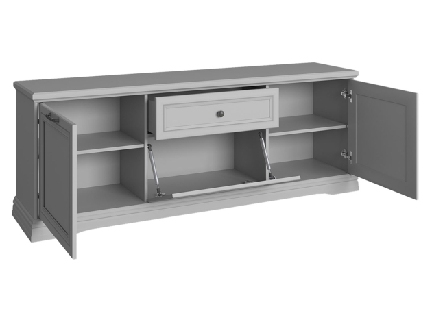 ТВ-тумба Валенсия дополнит систему хранения в гостиной и поможет разместить широкоформатный телевизор. Отделения за распашными фасадами позволят хранить постельные принадлежности и сложенную одежду, а в выдвижном ящике будет удобно держать в быстром доступе пульт и полезные мелочи.