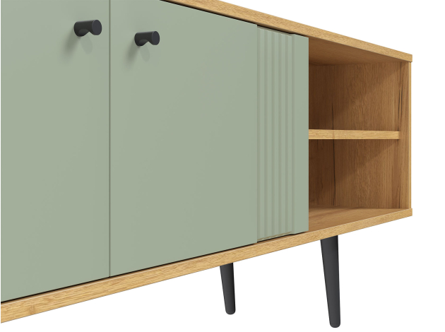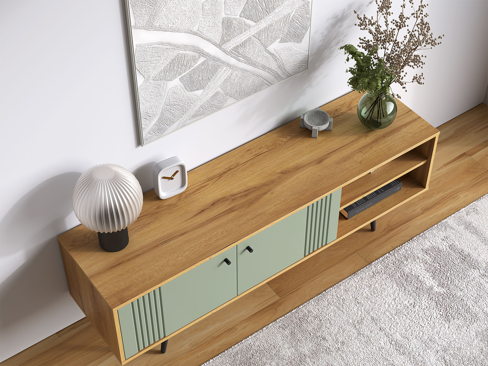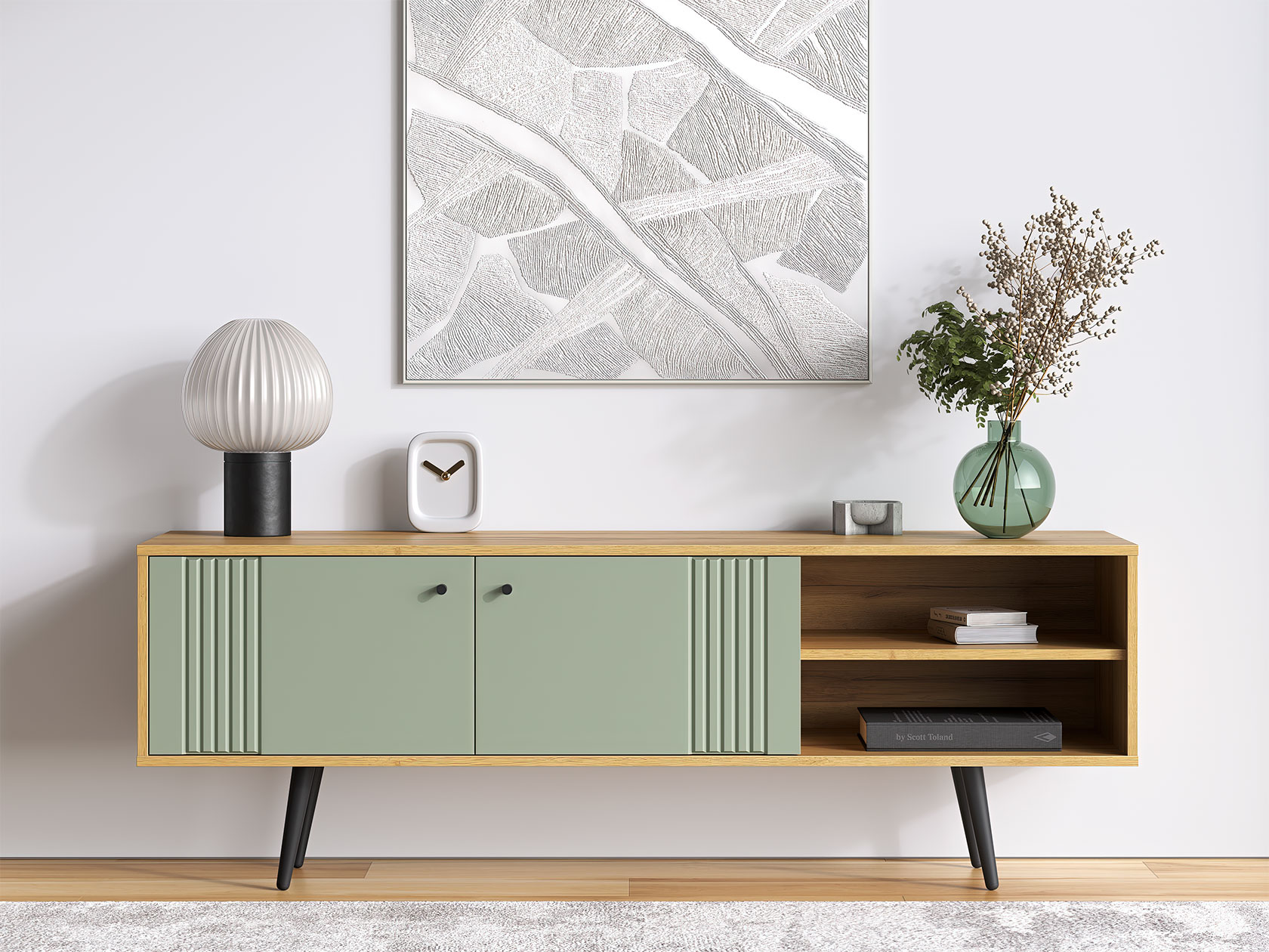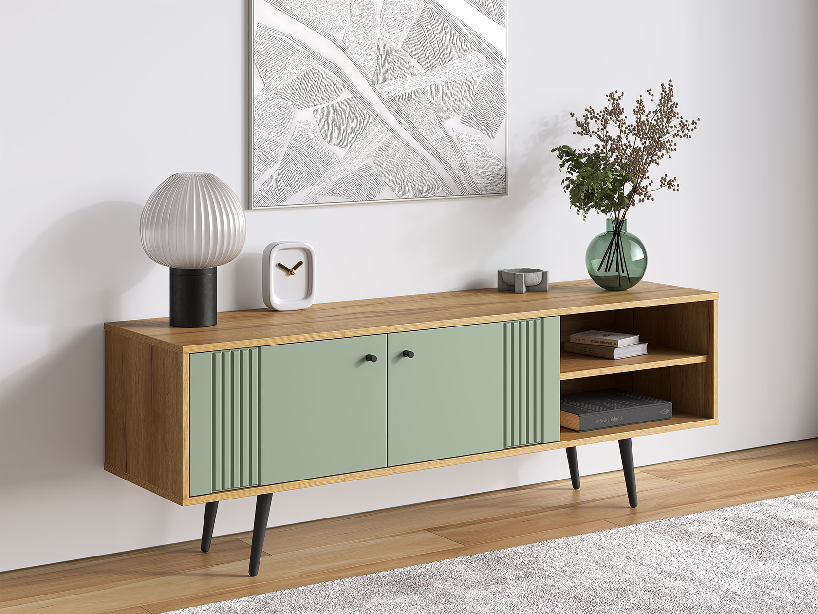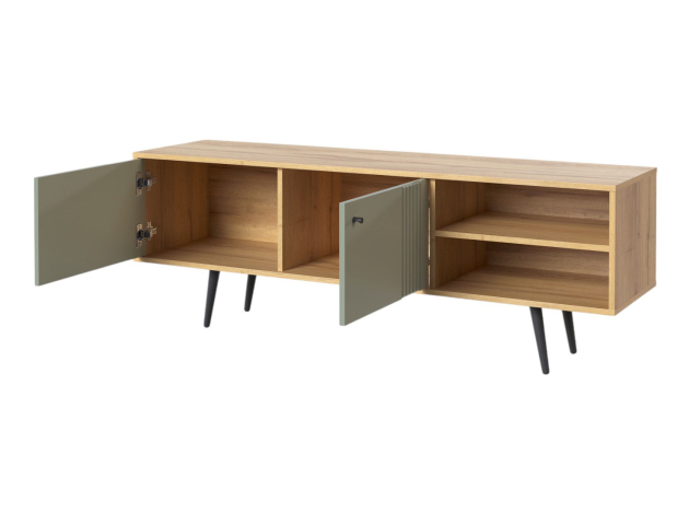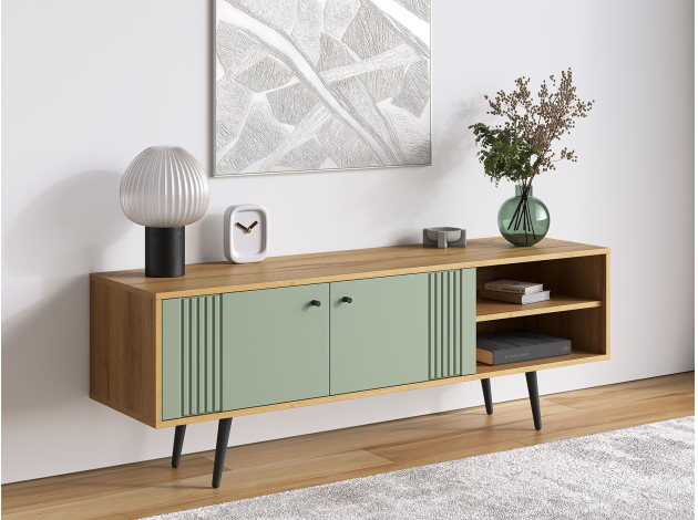 ТВ-тумба Вега Саксония станет основой уютного уголка для семейного просмотра фильмов и поможет организовать удобную систему хранения. Модель подойдет для установки аудио- и видеоаппаратуры, размещения декора, журналов и книг. Фасады с вертикальной фрезеровкой и наклонные ножки создают уютные акценты, которые подчеркнут как современный, так и ретро-интерьер.