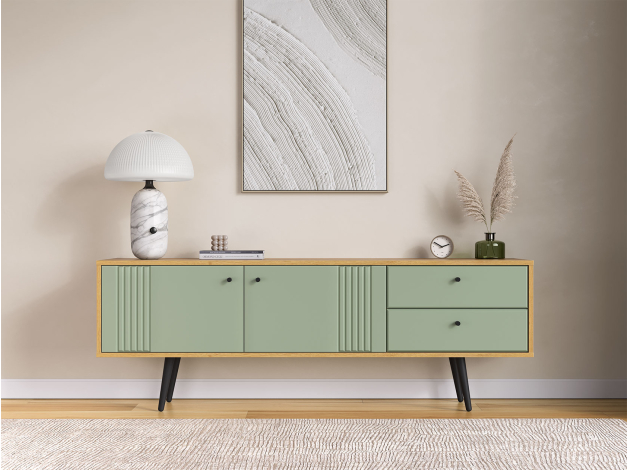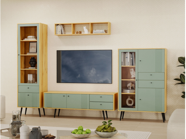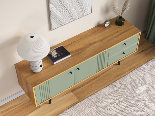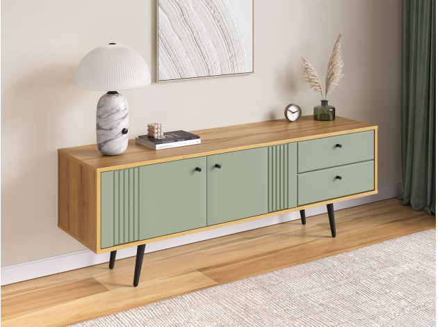 ТВ-тумба Вега Саксония Дуб Крафт золотой / Серо-зеленый С ящиками