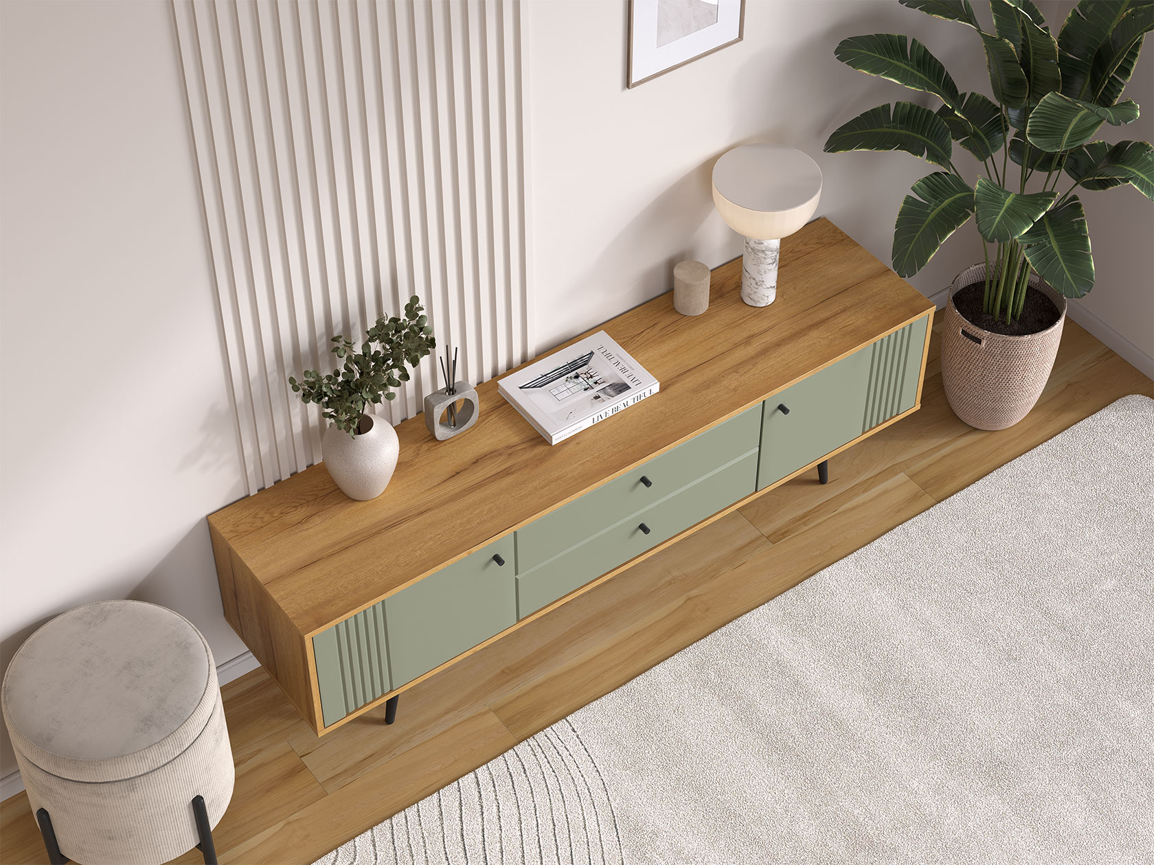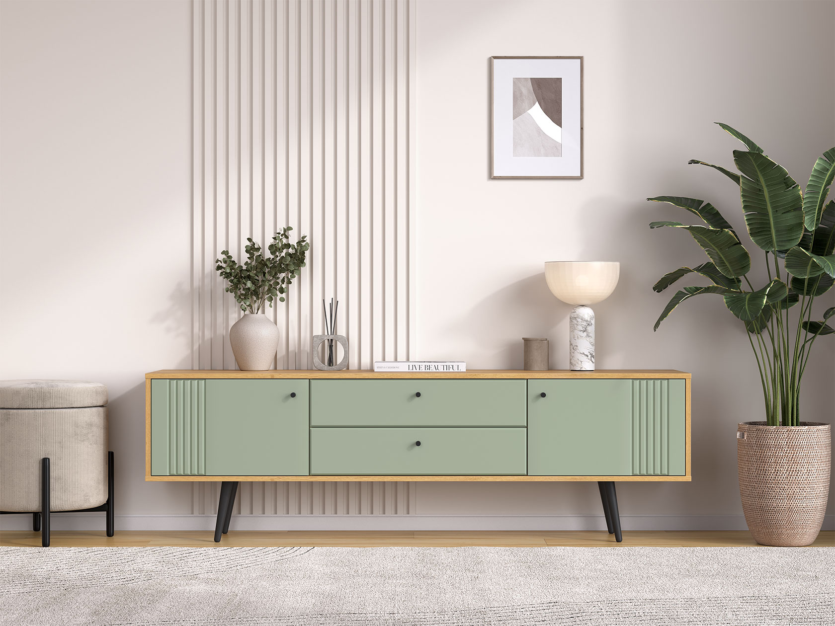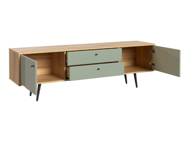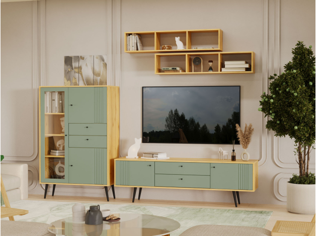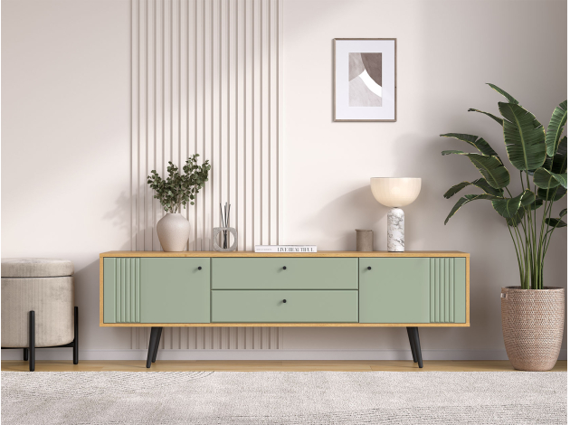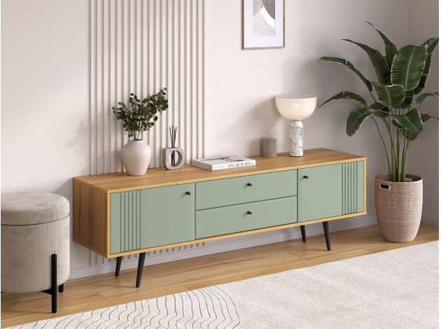 ТВ-тумба Вега Саксония Комби поможет разместить широкоформатный монитор и создать комфортный уголок для просмотра любимых фильмов. Сочетание выдвижных ящиков и закрытых полок создает привлекательный облик модели и позволяет удобно хранить необходимые мелочи. Древесная текстура и фрезеровка на фасадах добавляет интерьеру интересные акценты.