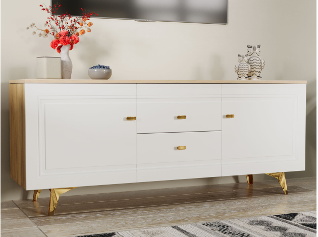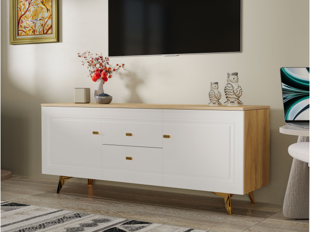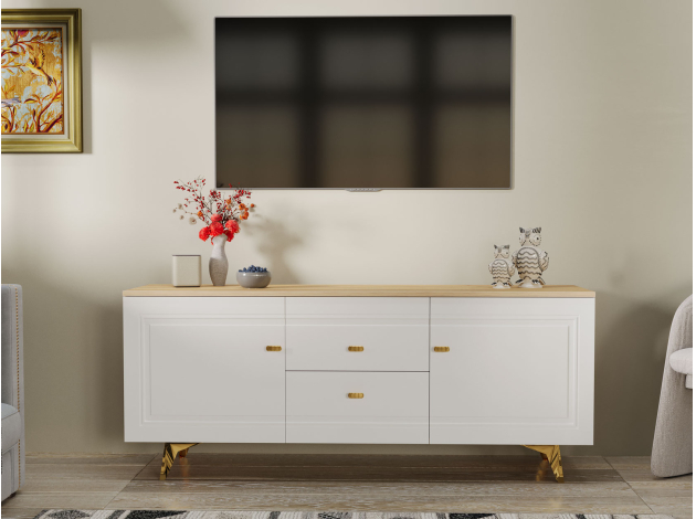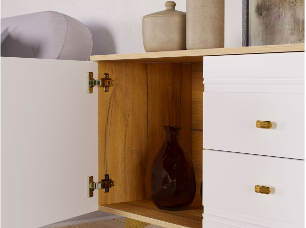 ТВ-тумба Вега Сапфир позволит разместить аудио- и видеотехнику, а также поможет поддерживать порядок среди сопутствующих аксессуаров. Комбинированное наполнение с полками и выдвижными ящиками создает удобную систему хранения. Элегантный дизайн модели украсит интерьер гостиной.