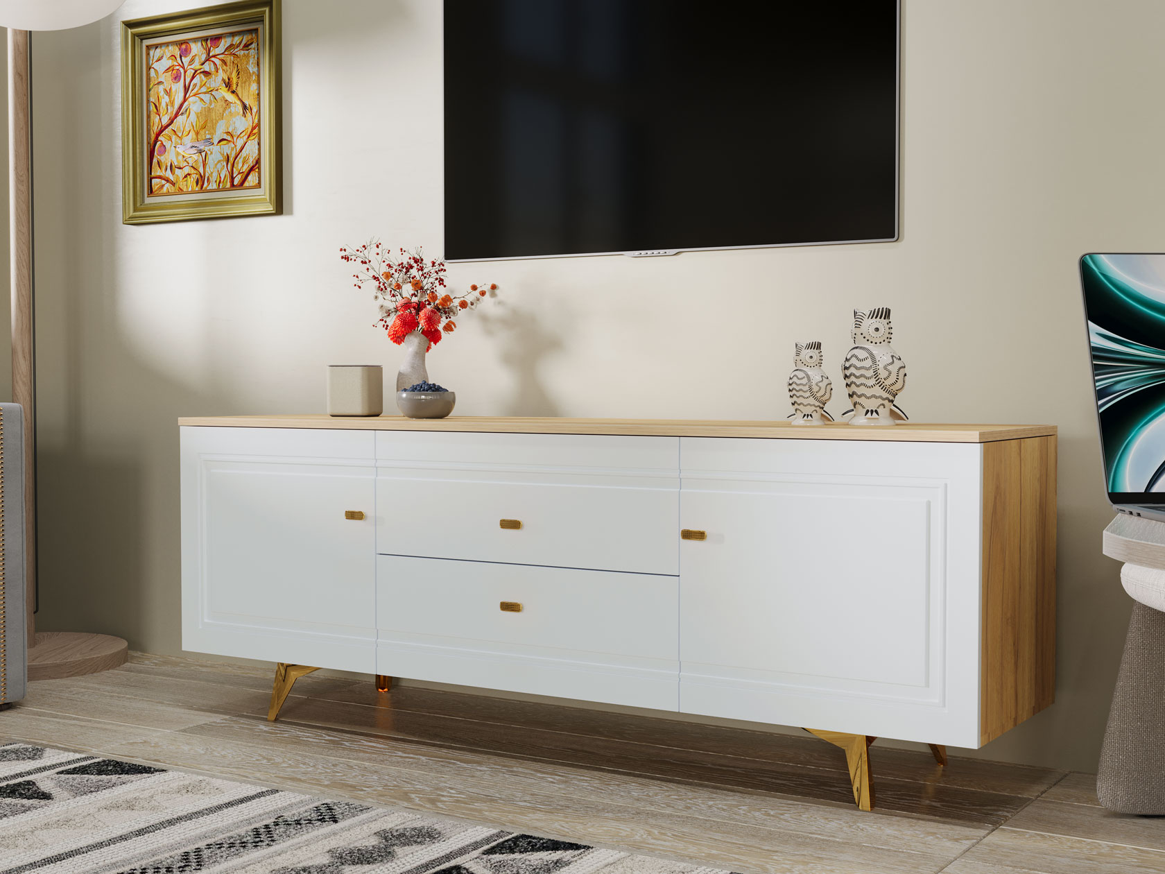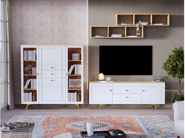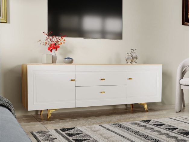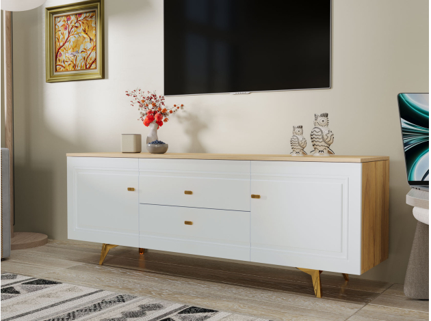 ТВ-тумба Вега Сапфир Дуб золотистый / Белый глянец 170 см
