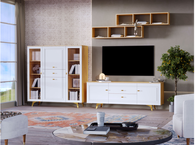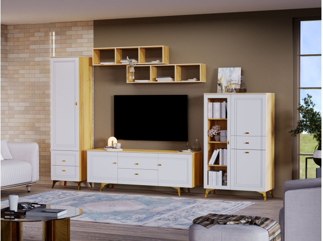 • Дуб золотистый / Белый глянец
