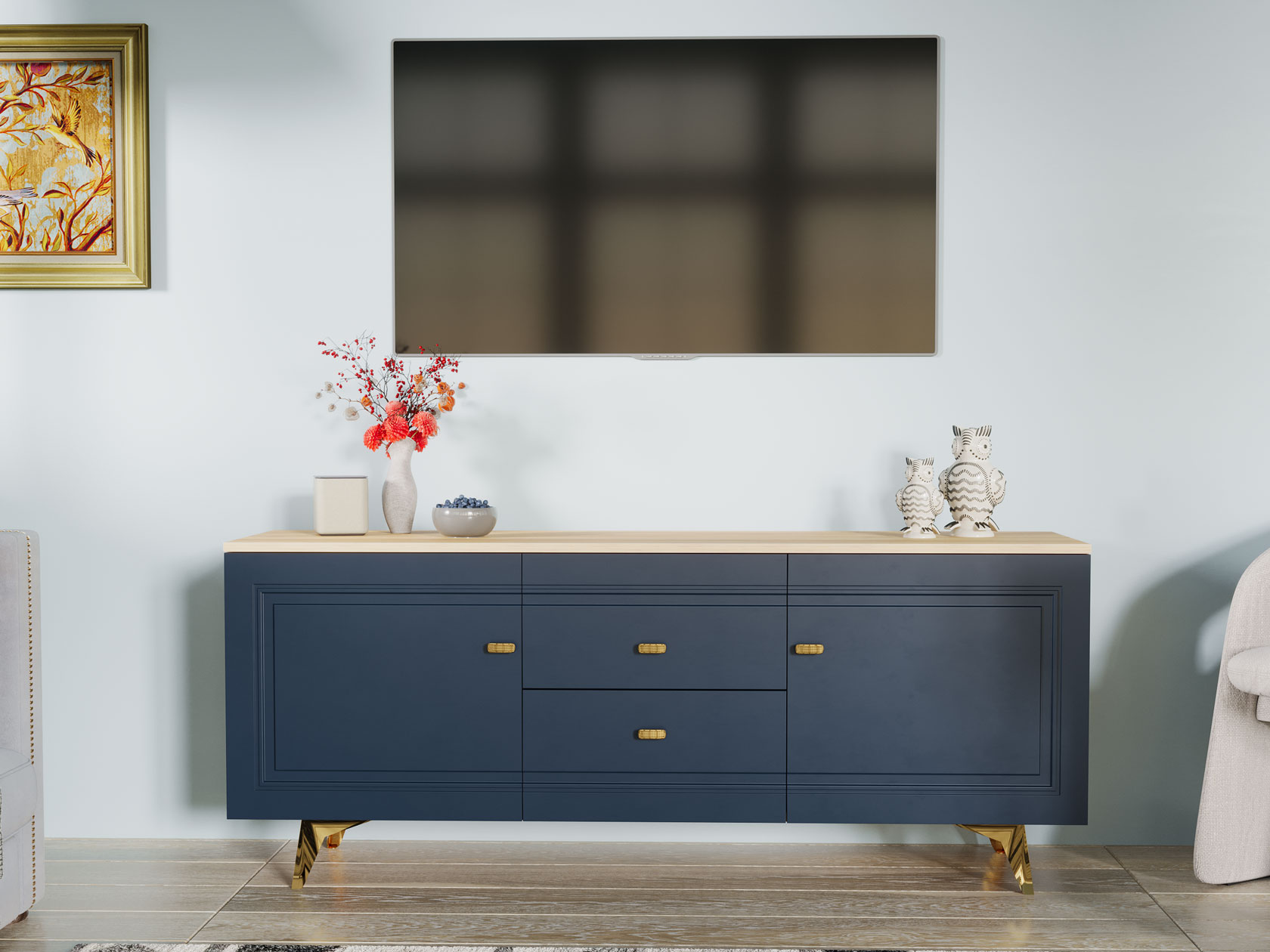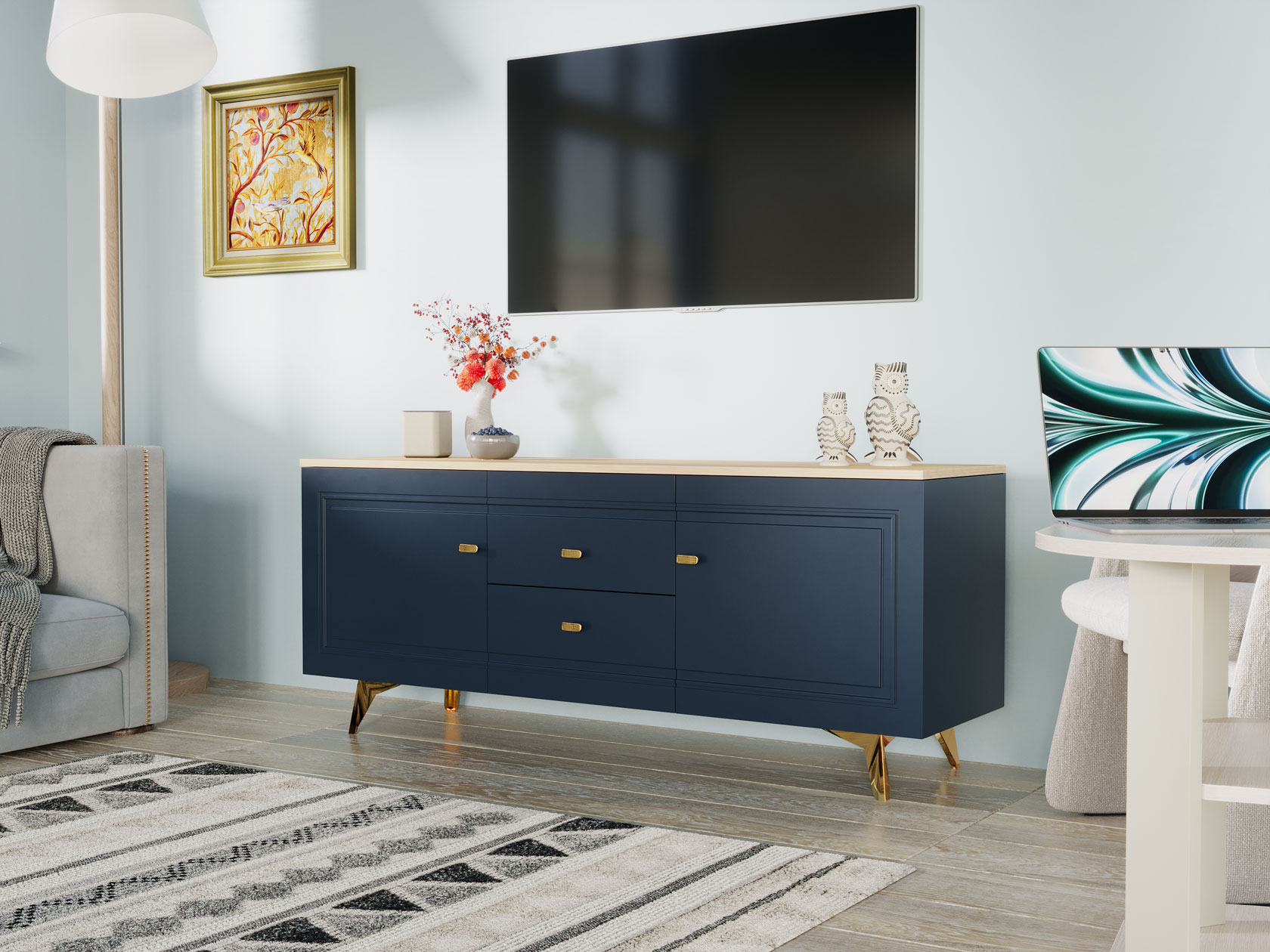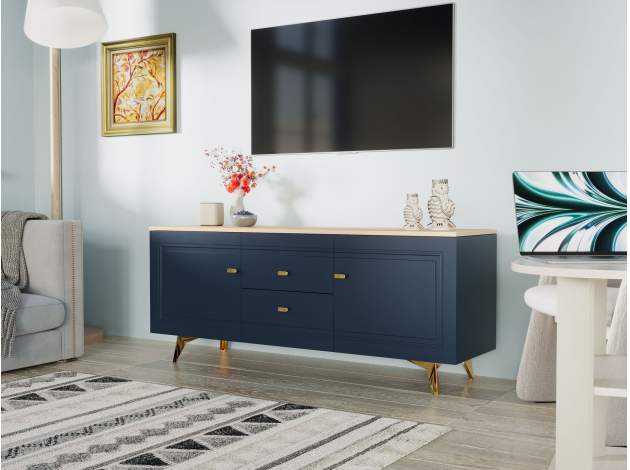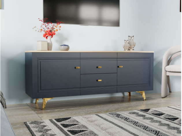 ТВ-тумба Вега Сапфир позволит разместить аудио- и видеотехнику, а также поможет поддерживать порядок среди сопутствующих аксессуаров. Комбинированное наполнение с полками и выдвижными ящиками создает удобную систему хранения. Элегантный дизайн модели украсит интерьер гостиной.