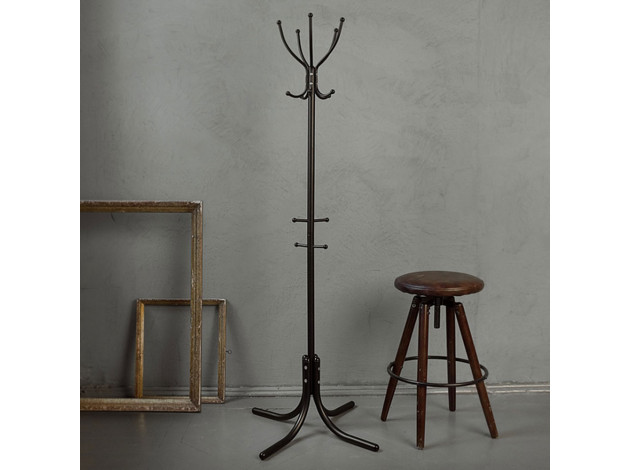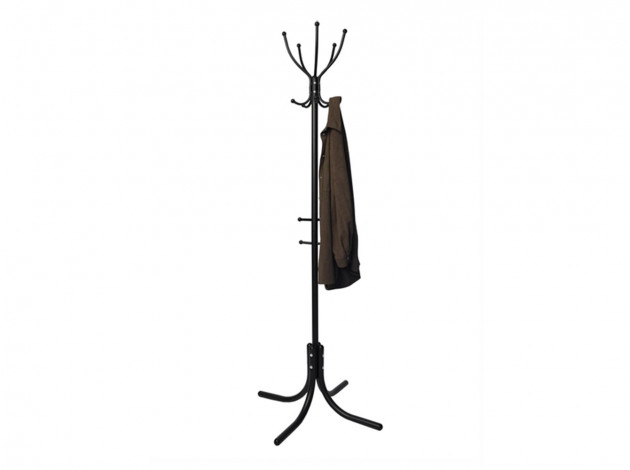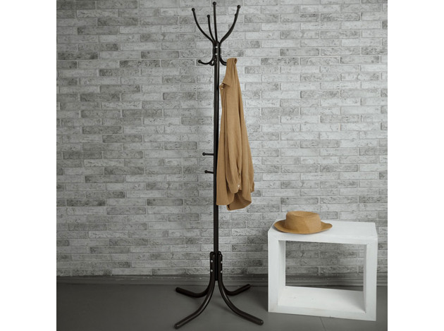 Удобная напольная вешалка имеет 5 крючков для одежды, а так же дополнительные крючки для сумок. Вешалка прекрасно вписывается в любой интерьер благодаря своей универсальности и лаконичности дизайна. Вешалка сделана из стали с полимерным покрытием, что обеспечивает ей прочность и высокое качество.