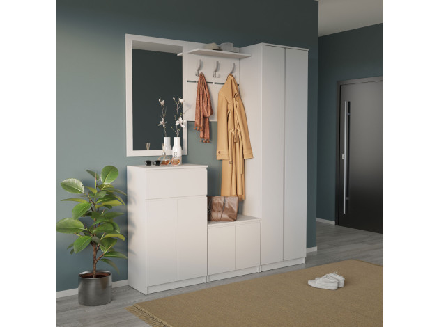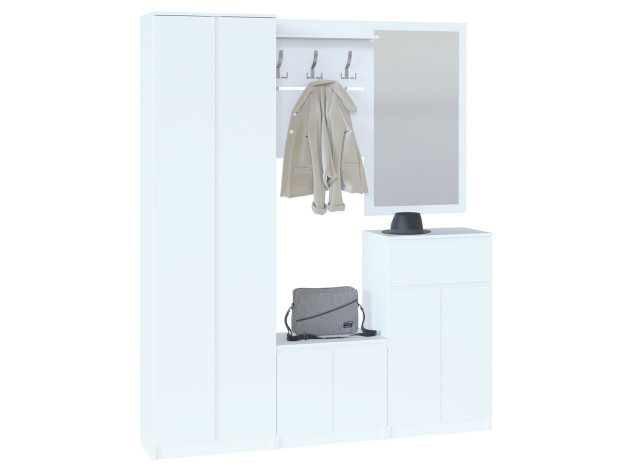Настенная вешалка Орион позволит аккуратно развесить повседневную верхнюю одежду на прочных двухрожковых крючках. Модель оснащена небольшой полкой для головных уборов и зонтов.