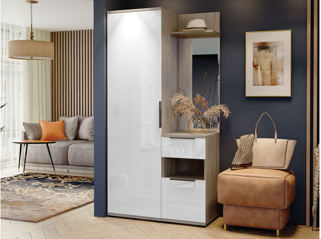 Настенное зеркало Альянс визуально расширит помещение и сделает обстановку комфортнее. Полка наверху отлично подходит для коробок с аксессуарами. В оформлении нет лишних деталей, поэтому модель смотрится гармонично практически в любом интерьере.