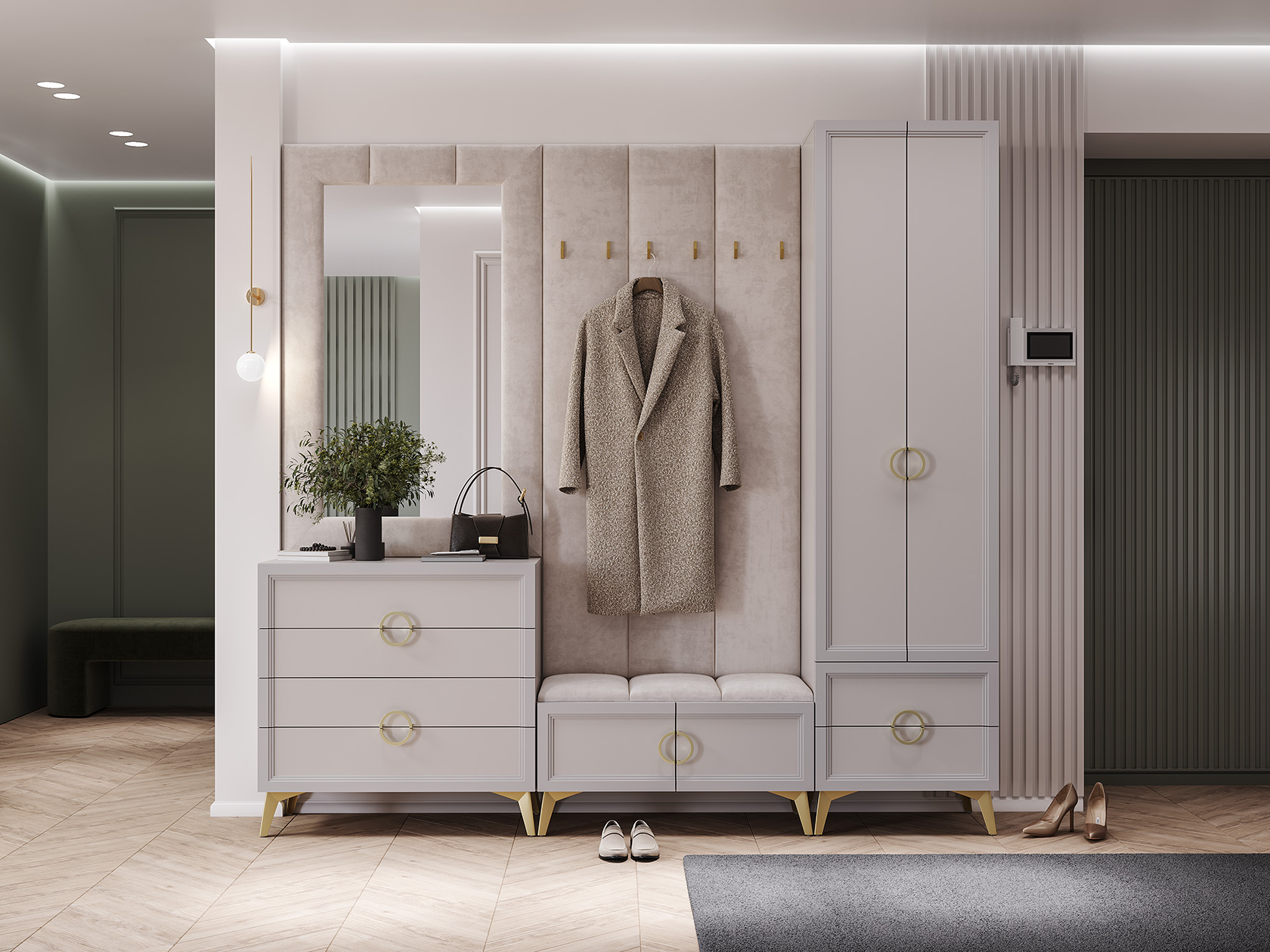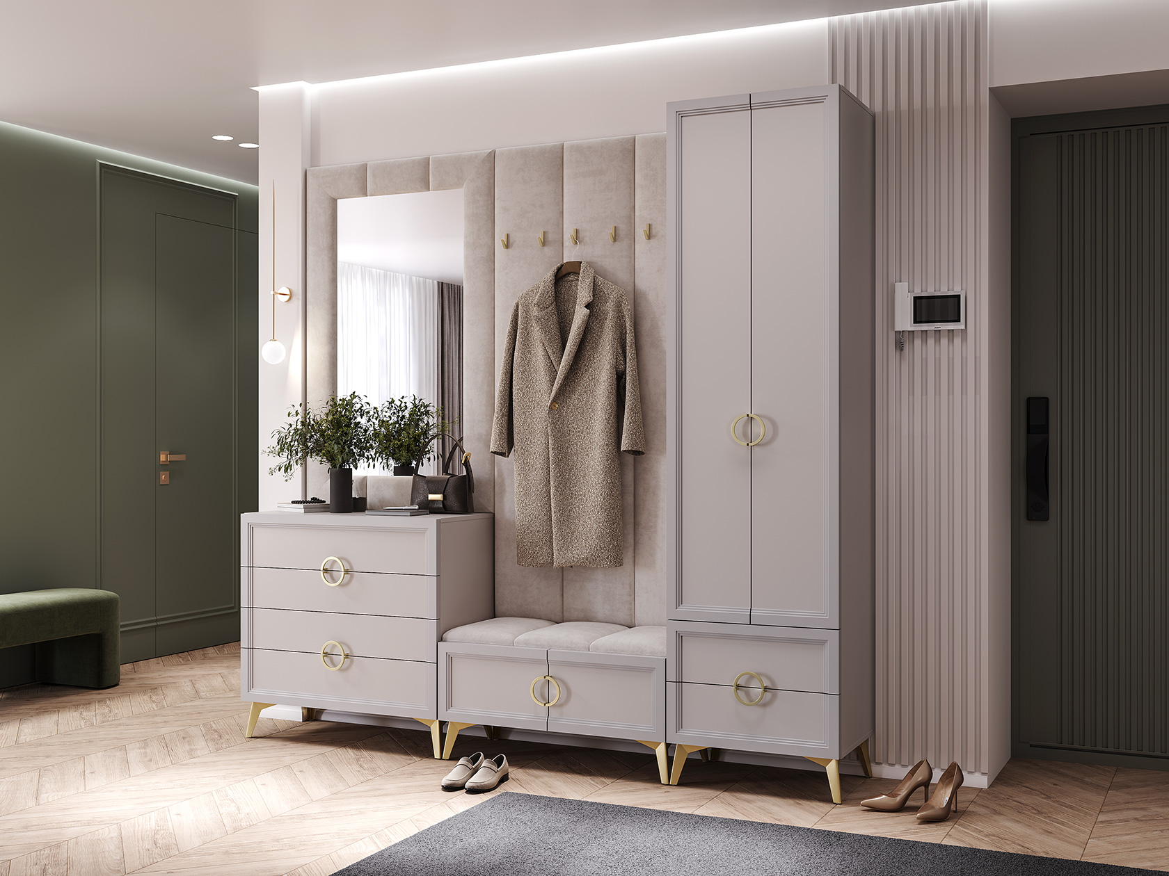 Настенное зеркало Эстетика станет стильным акцентом интерьера и поможет обустроить аккуратный уголок для ухода за собой. Прямоугольная форма универсальна и удобна как для прихожей, так и для спальни. Мягкая рама добавляет обстановке нотки уюта и оригинальности. «Эффект мятой ткани» решает проблему отпечатков пальцев, что облегчает уход за поверхностью.