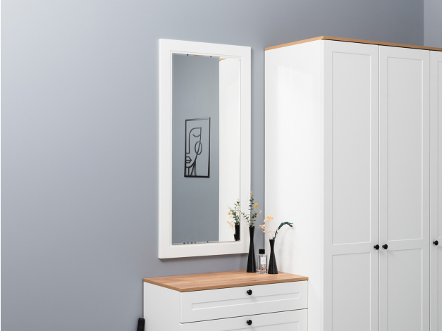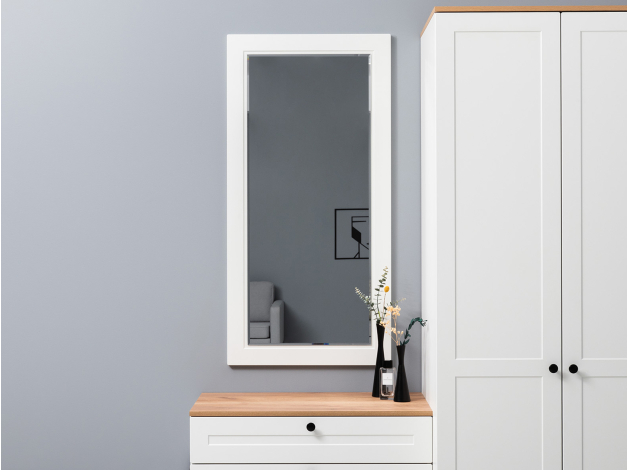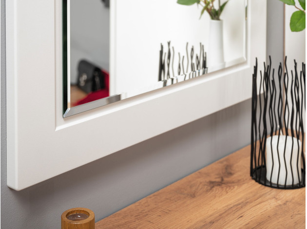 Настенное зеркало Остин с изящной фацетной огранкой и минималистичной рамой отлично подойдет для оформления любого интерьера. Широкое зеркальное полотно сделает помещение визуально просторнее, а обстановку — светлее.