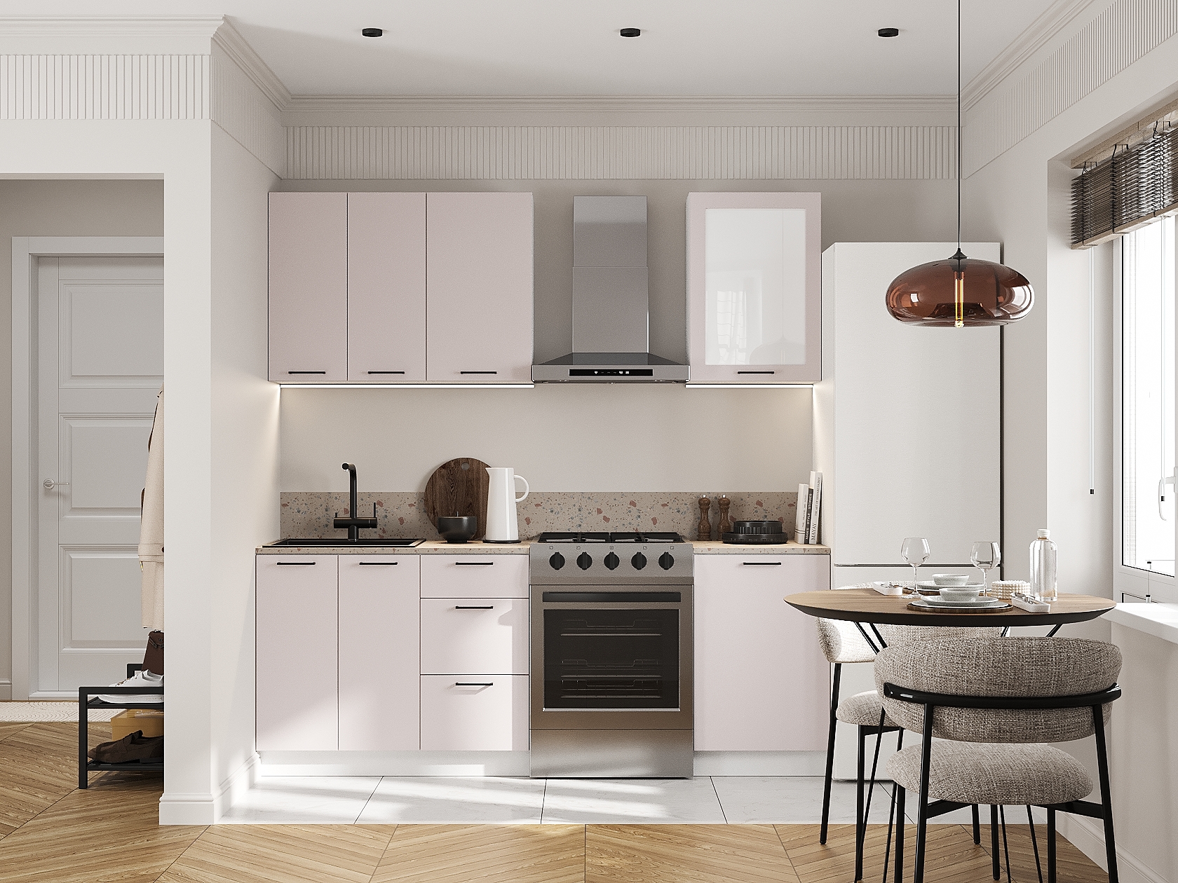 Кухонный гарнитур Аурелио 150 см Белый / Айриш / Белый лакобель Шариковые