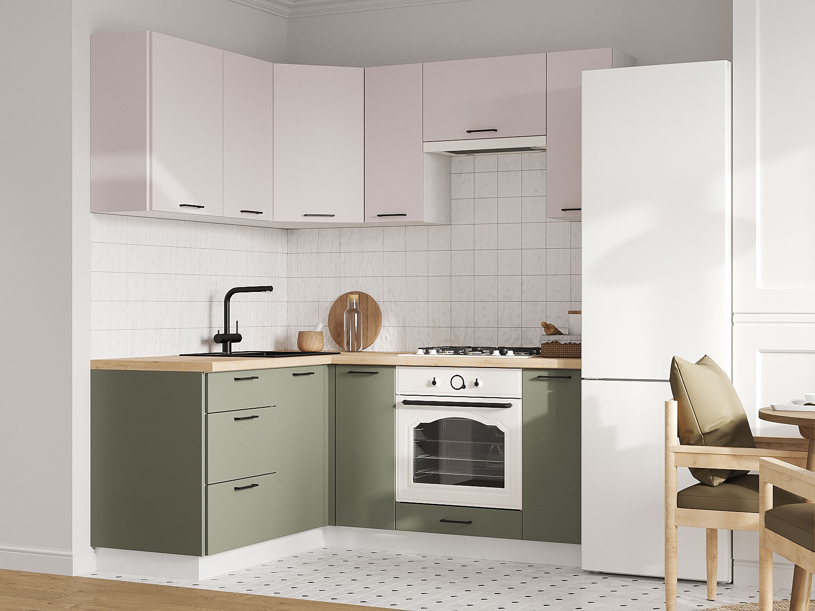 Кухонный гарнитур Аурелио 180х150 см Белый / Айриш / Эвкалипт софт Скрытые «Старт»