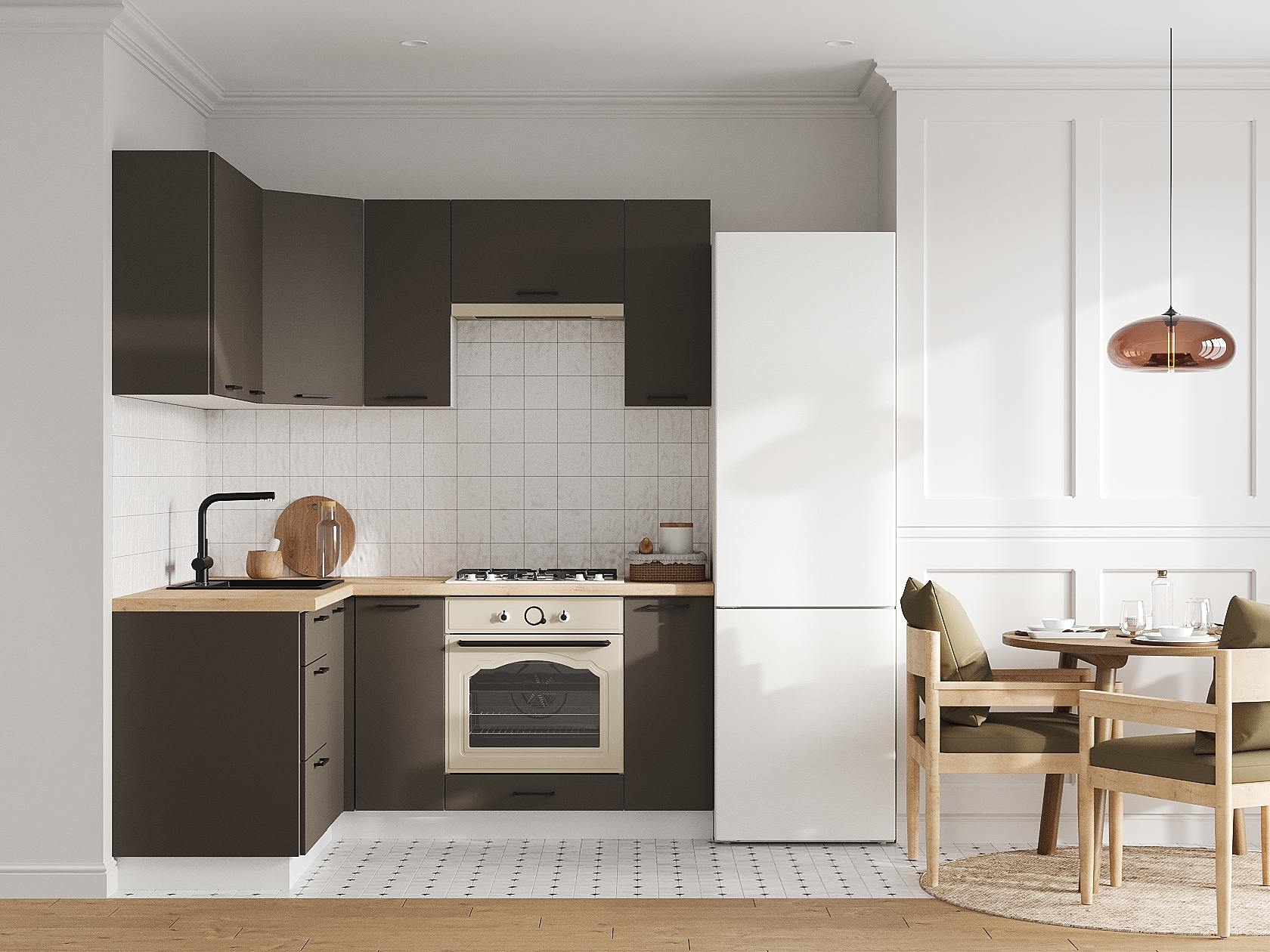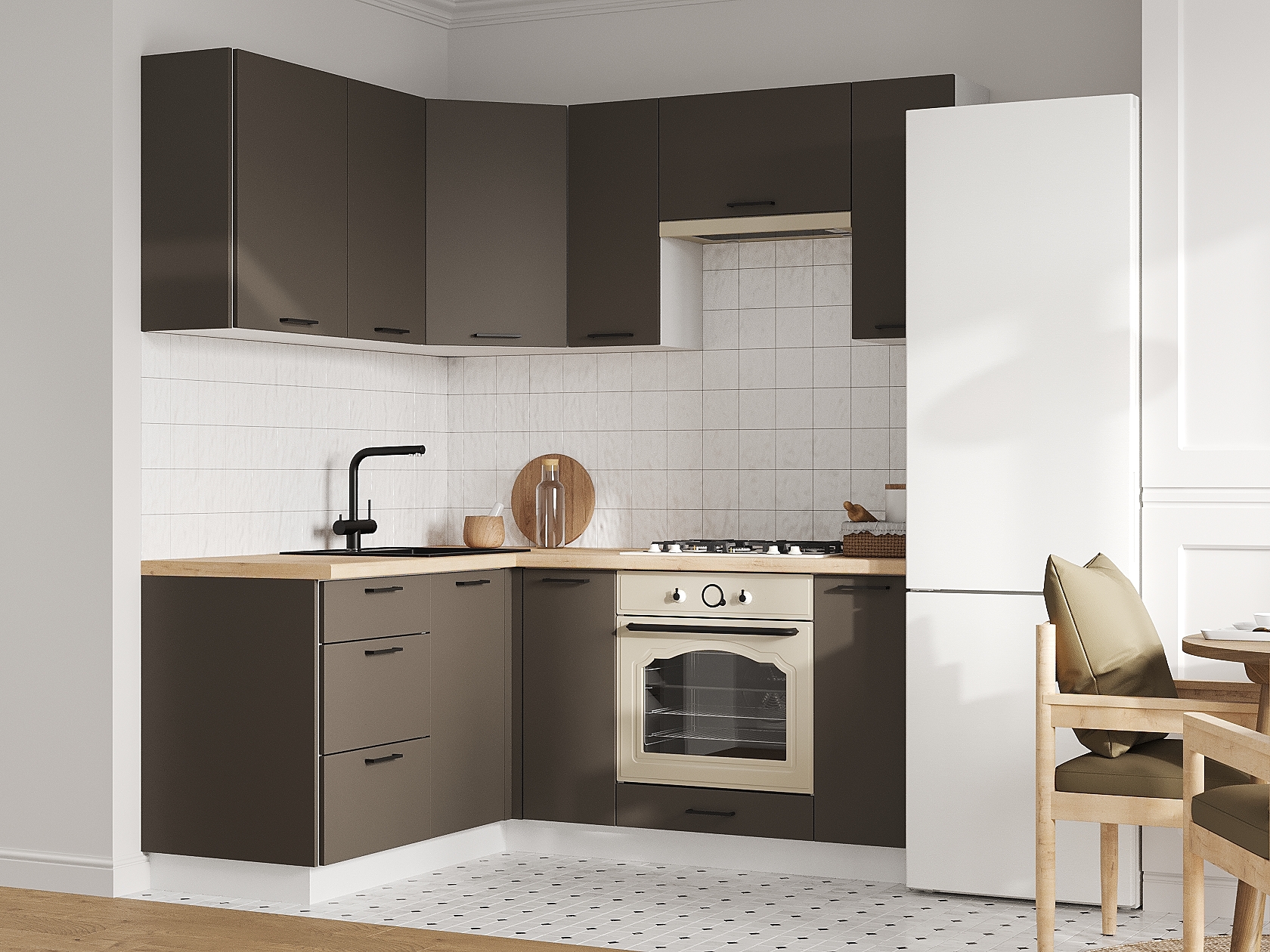 Кухонный гарнитур Аурелио 180х150 см Белый / Маренго Шариковые