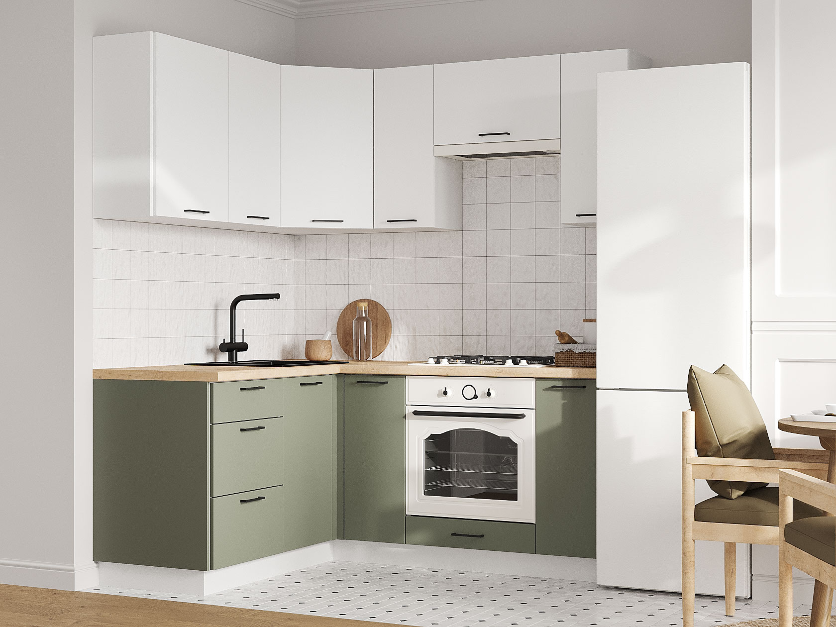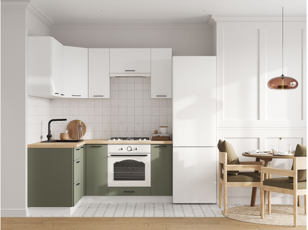 Кухонный гарнитур Аурелио 180х150 см Белый / Снежно-белый / Эвкалипт софт Скрытые «Дорадо»