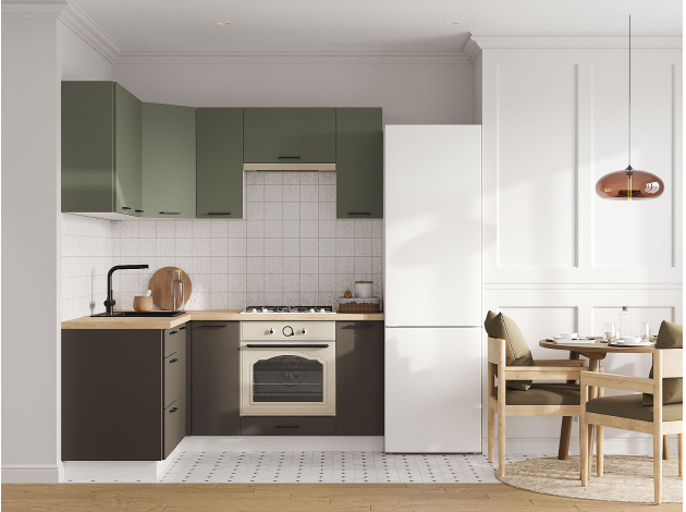 Кухонный гарнитур Аурелио 180х150 см Белый / Эвкалипт софт / Маренго Скрытые «Дорадо»