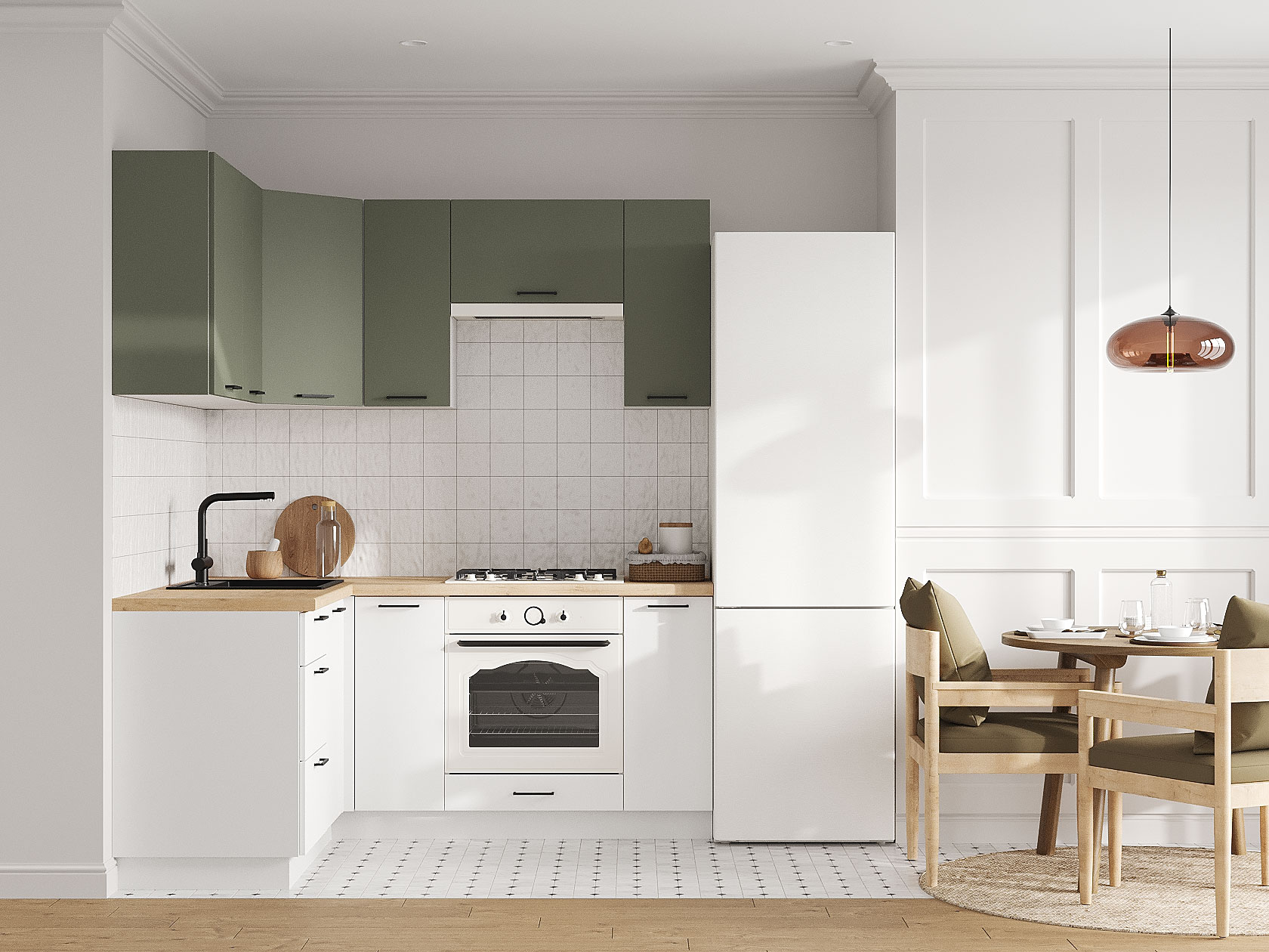 Кухонный гарнитур Аурелио 180х150 см Белый / Эвкалипт софт / Снежно-белый Скрытые «Дорадо»