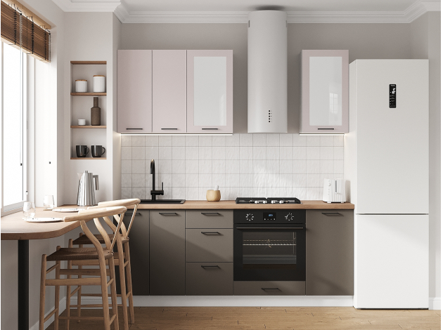 Кухонный гарнитур Аурелио 200 см Белый / Айриш / Белый лакобель / Маренго Скрытые «Старт»