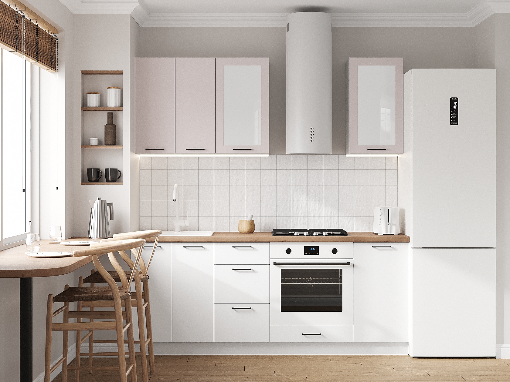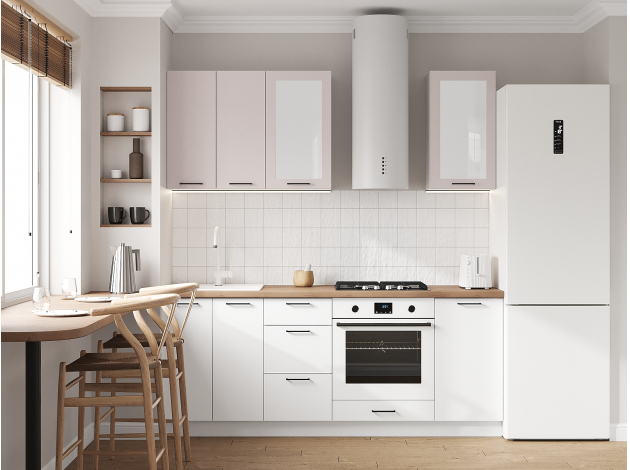 Кухонный гарнитур Аурелио 200 см Белый / Айриш / Белый лакобель / Снежно-белый Скрытые «Старт»