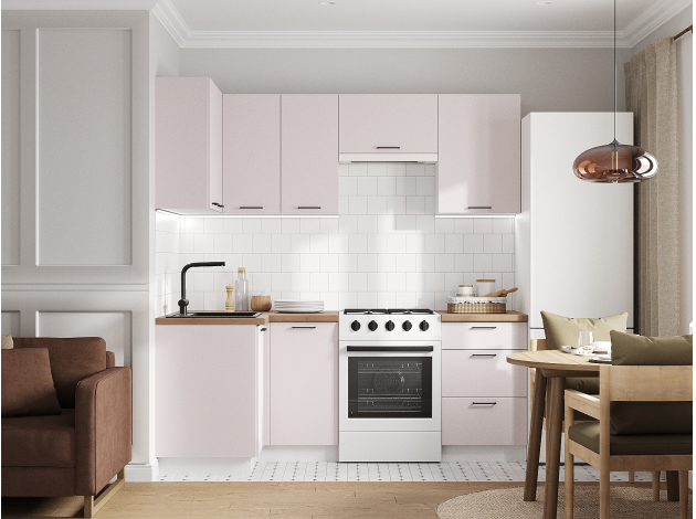 Кухонный гарнитур Аурелио 210х100 см поможет создать практичную атмосферу для ежедневных хлопот. Элементы расположены по правилу рабочего треугольника, что позволяет готовить в комфортных условиях, так как всё необходимое находится под рукой. Матовые фасады с лаконичными ручками смотрятся привлекательно в современном интерьере. Благодаря материалу, устойчивому к загрязнениям, влаге и ультрафиолету, мебель долго сохраняет первоначальный вид.