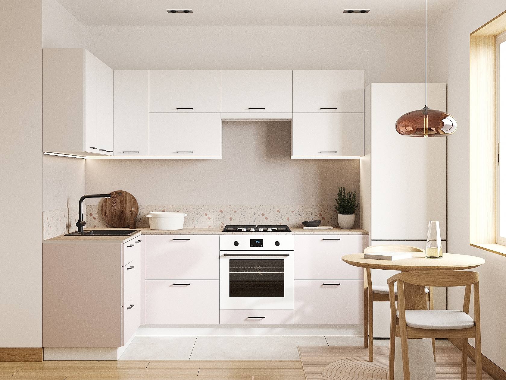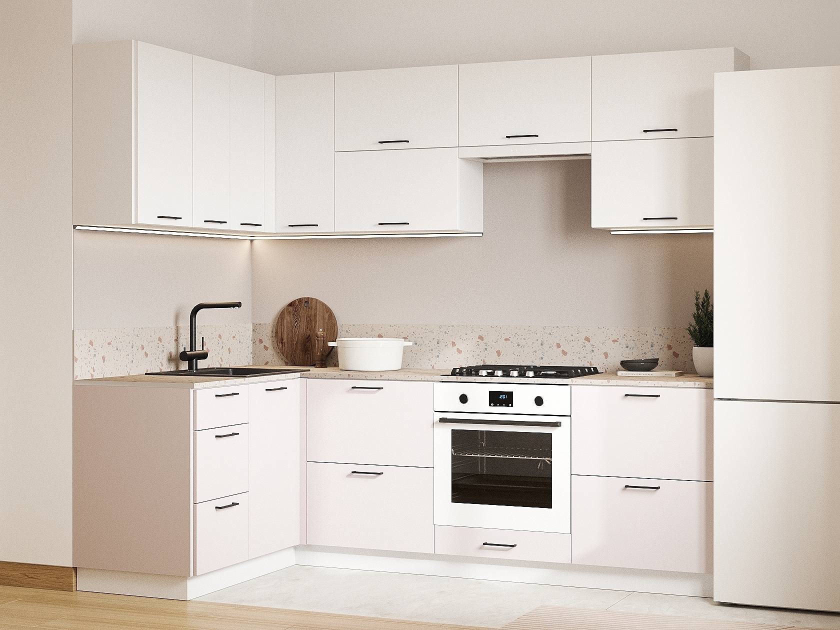 Кухонный гарнитур Аурелио 240х140 см Белый / Снежно-белый / Айриш Шариковые