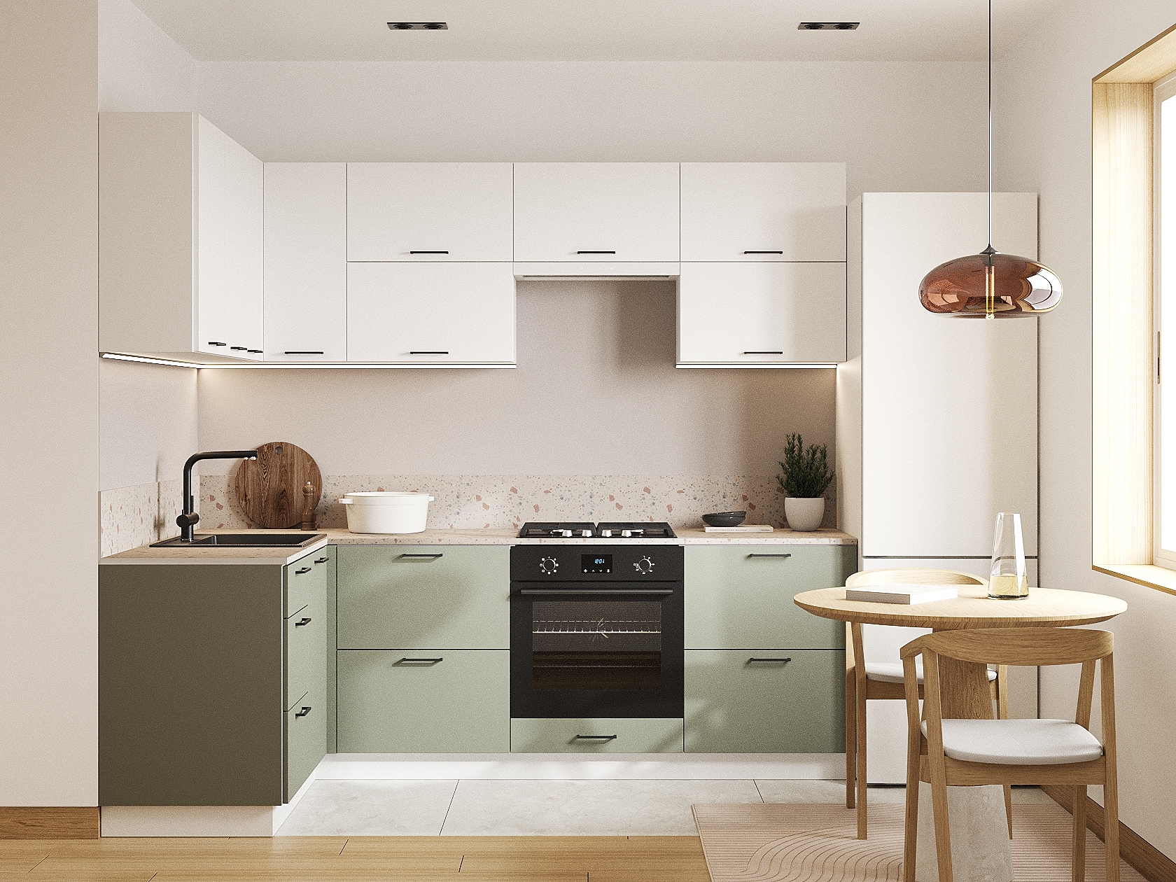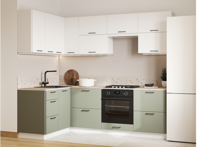 Кухонный гарнитур Аурелио 240х140 см Белый / Снежно-белый / Эвкалипт софт Скрытые «Дорадо»