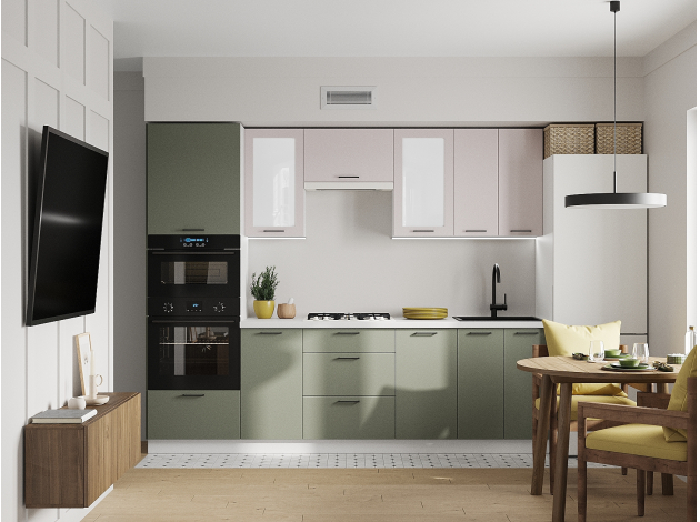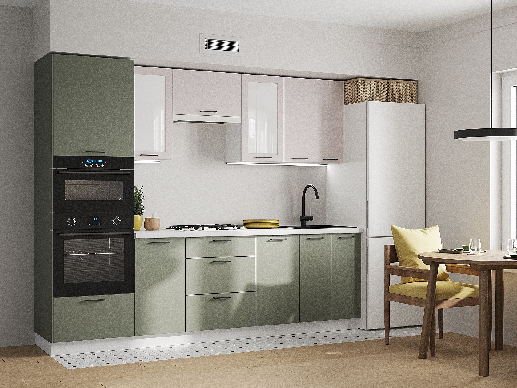 Кухонный гарнитур Аурелио 260 см Белый / Айриш / Белый лакобель / Эвкалипт софт Скрытые «Старт»