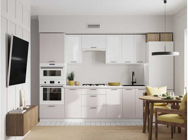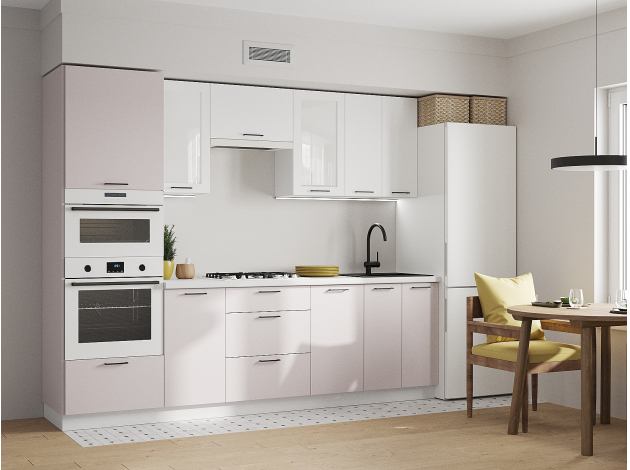 Кухонный гарнитур Аурелио 260 см Белый / Снежно-белый / Белый лакобель / Айриш Скрытые «Дорадо»