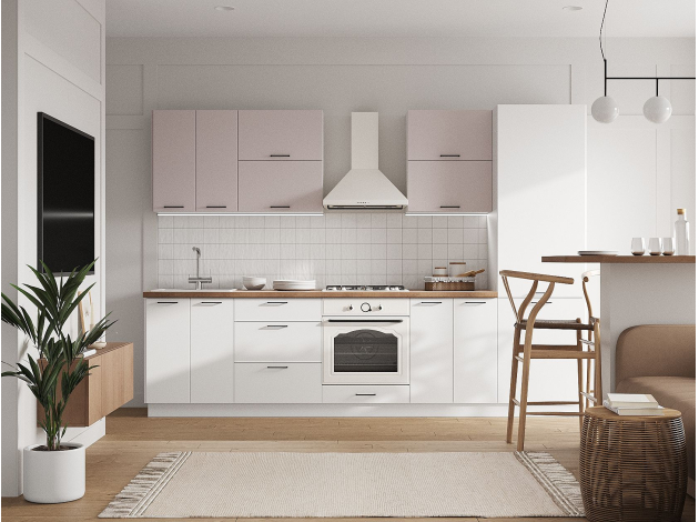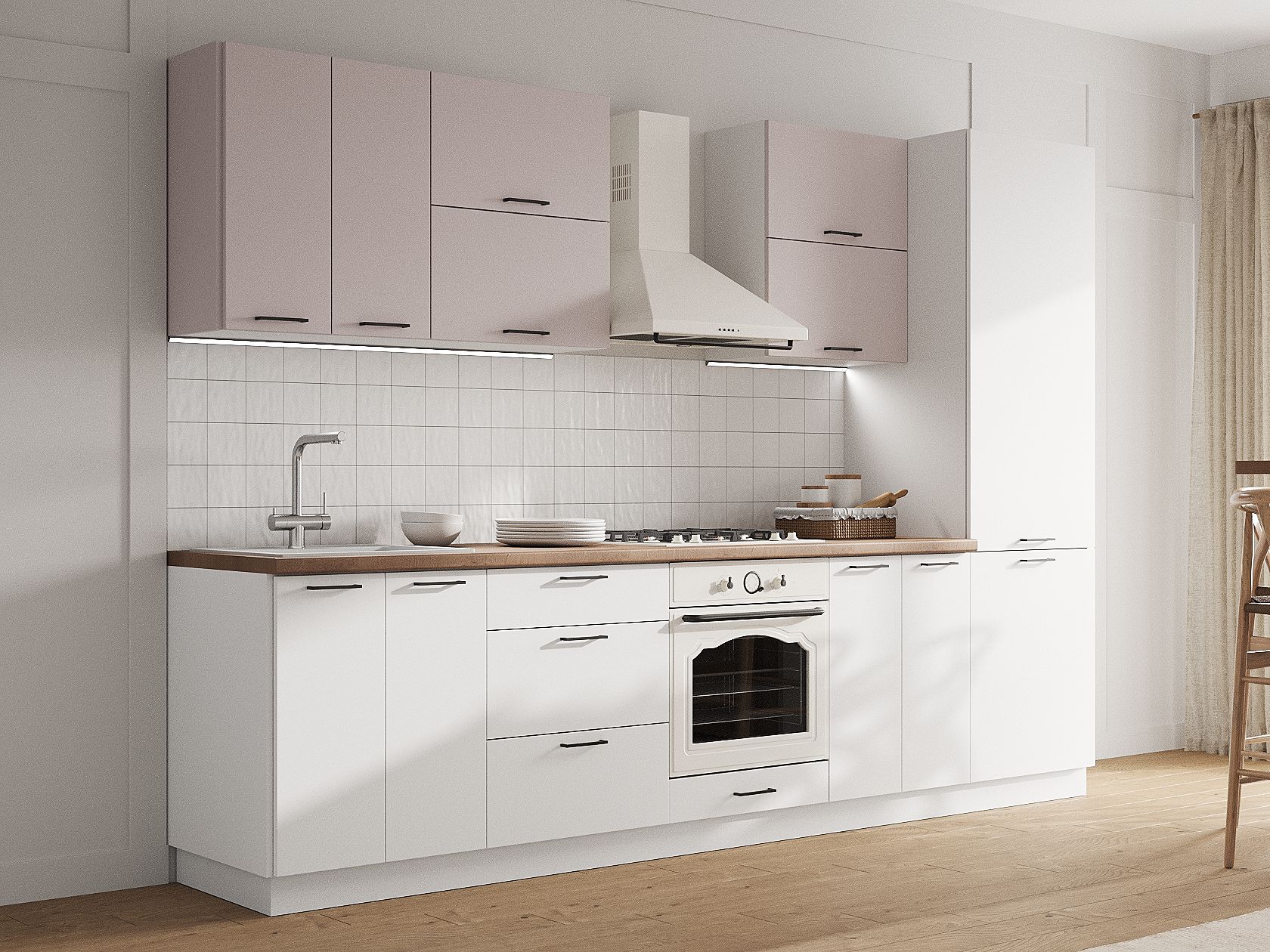 Кухонный гарнитур Аурелио 300 см Белый / Айриш / Снежно-белый Шариковые
