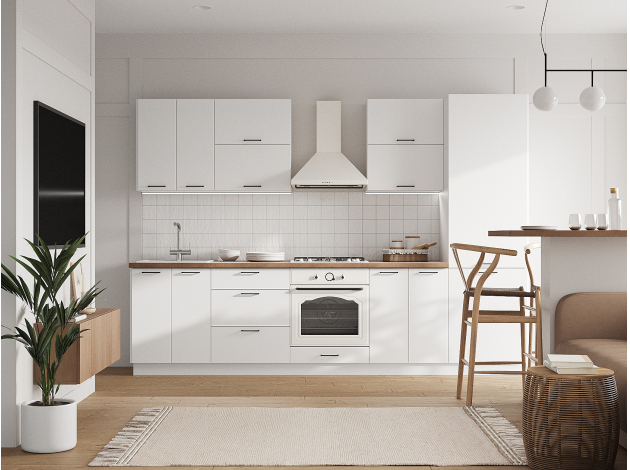 Кухонный гарнитур Аурелио 300 см Белый / Снежно-белый Скрытые «Старт»