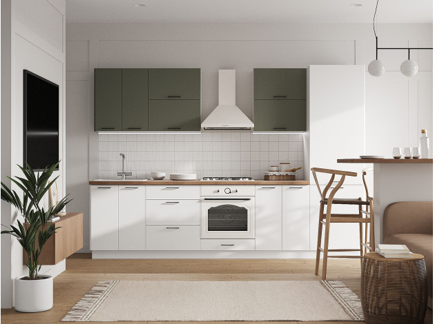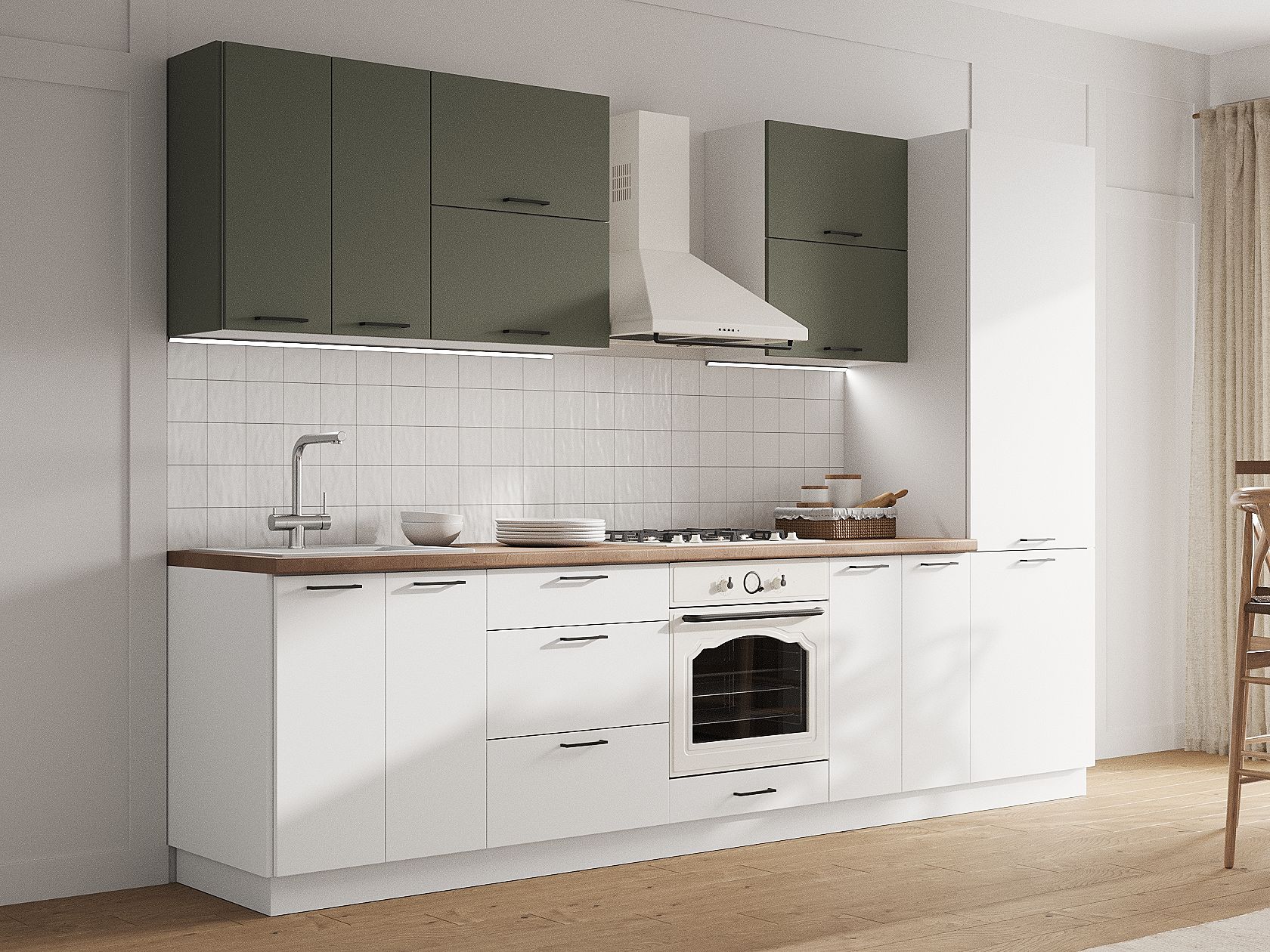 Кухонный гарнитур Аурелио 300 см Белый / Эвкалипт софт / Снежно-белый Скрытые «Дорадо»