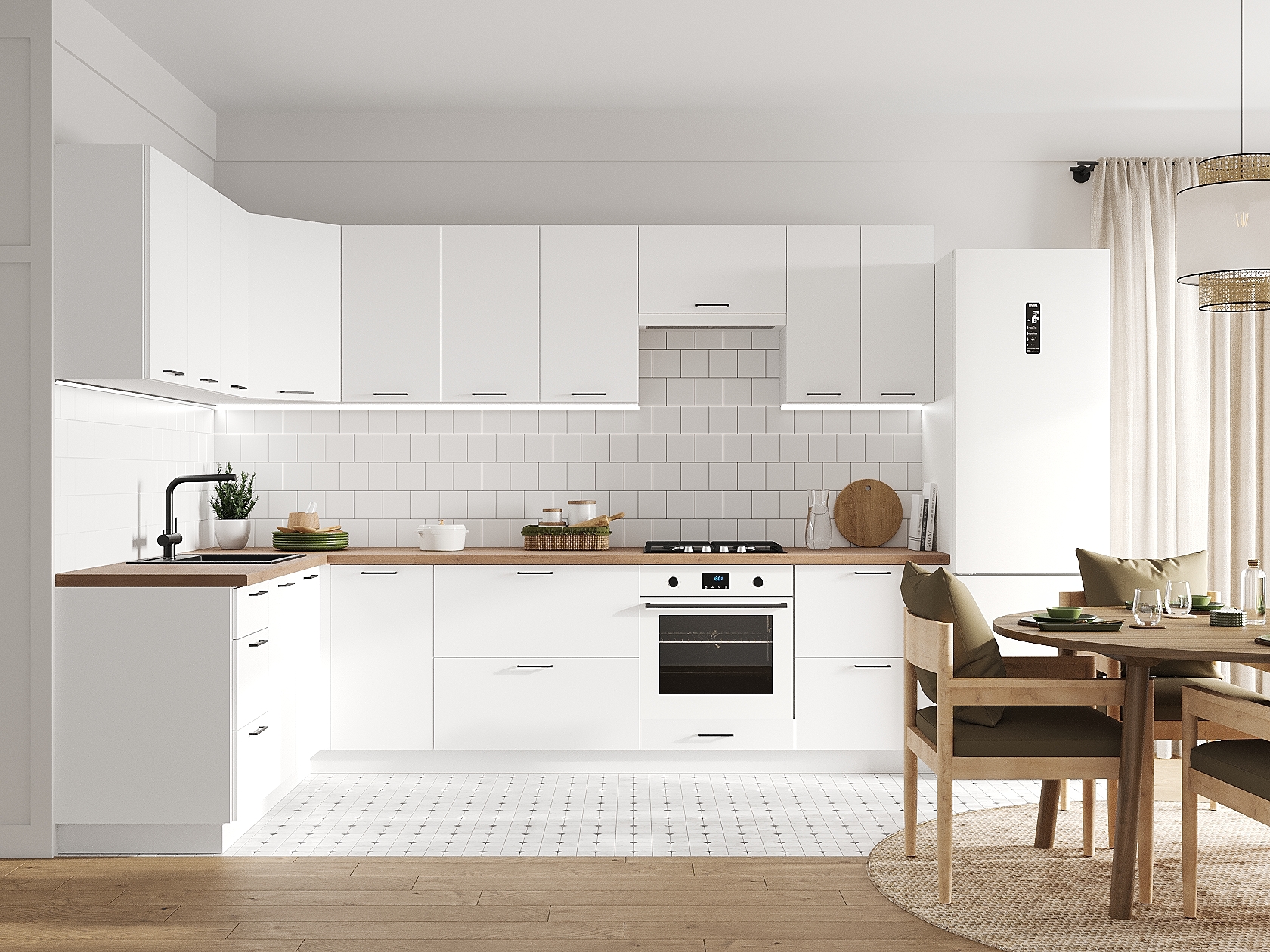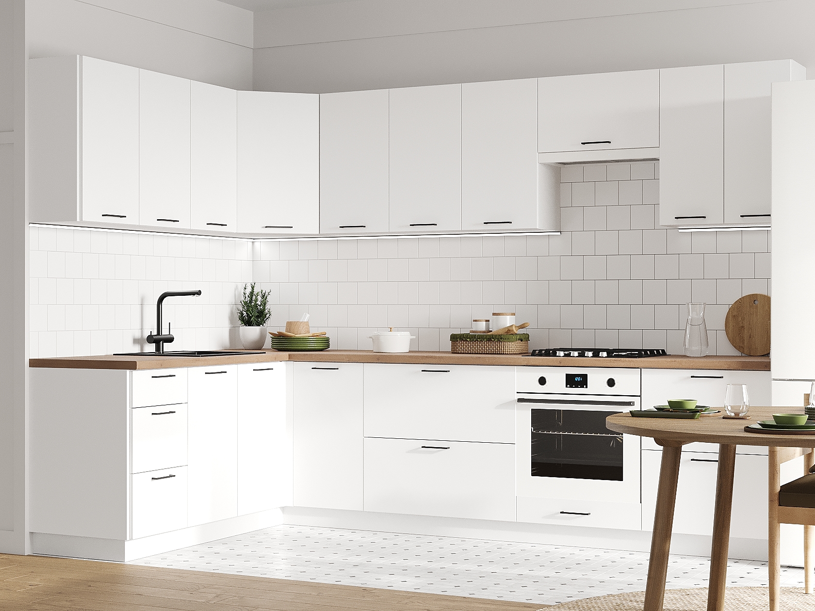 Кухонный гарнитур Аурелио 300х180 см Белый / Снежно-белый Скрытые «Дорадо»