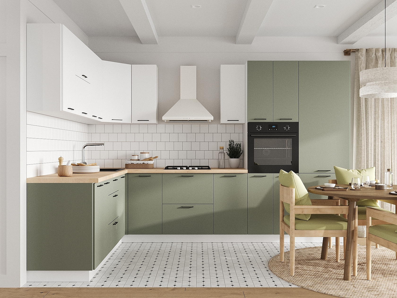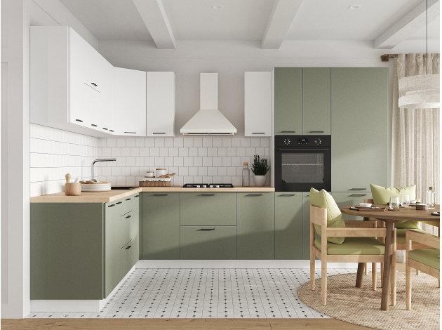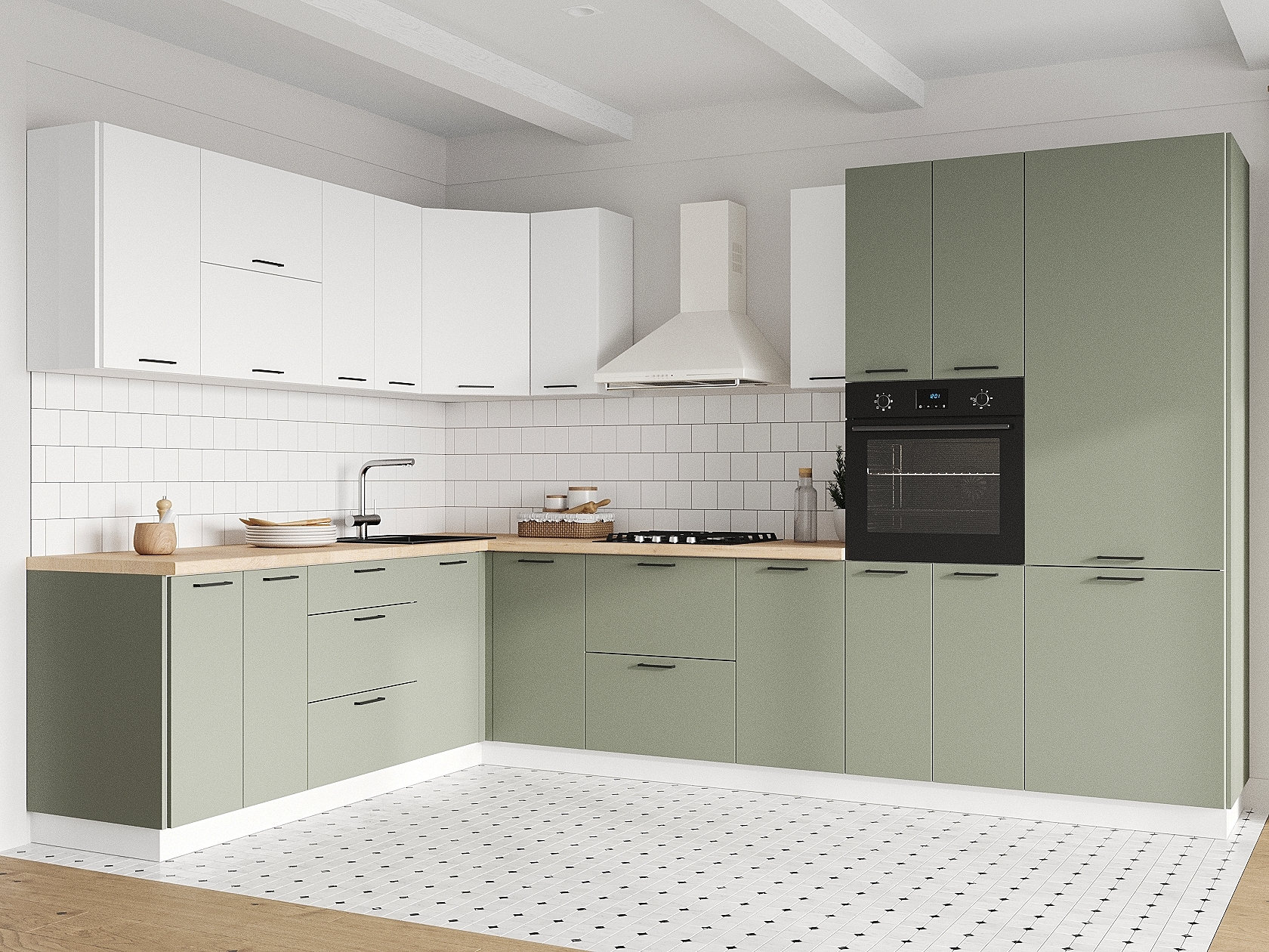 Кухонный гарнитур Аурелио 320х220 см Белый / Снежно-белый / Эвкалипт софт Скрытые «Дорадо»