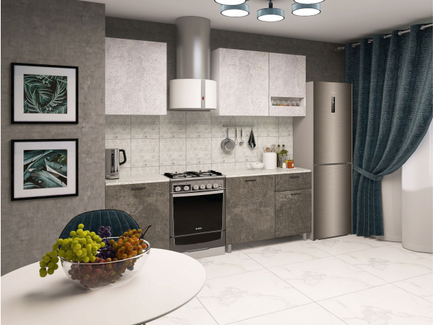 Обратите внимание, стеновая панель, плинтус, мойка и сушилка для посуды в комплект не входят.