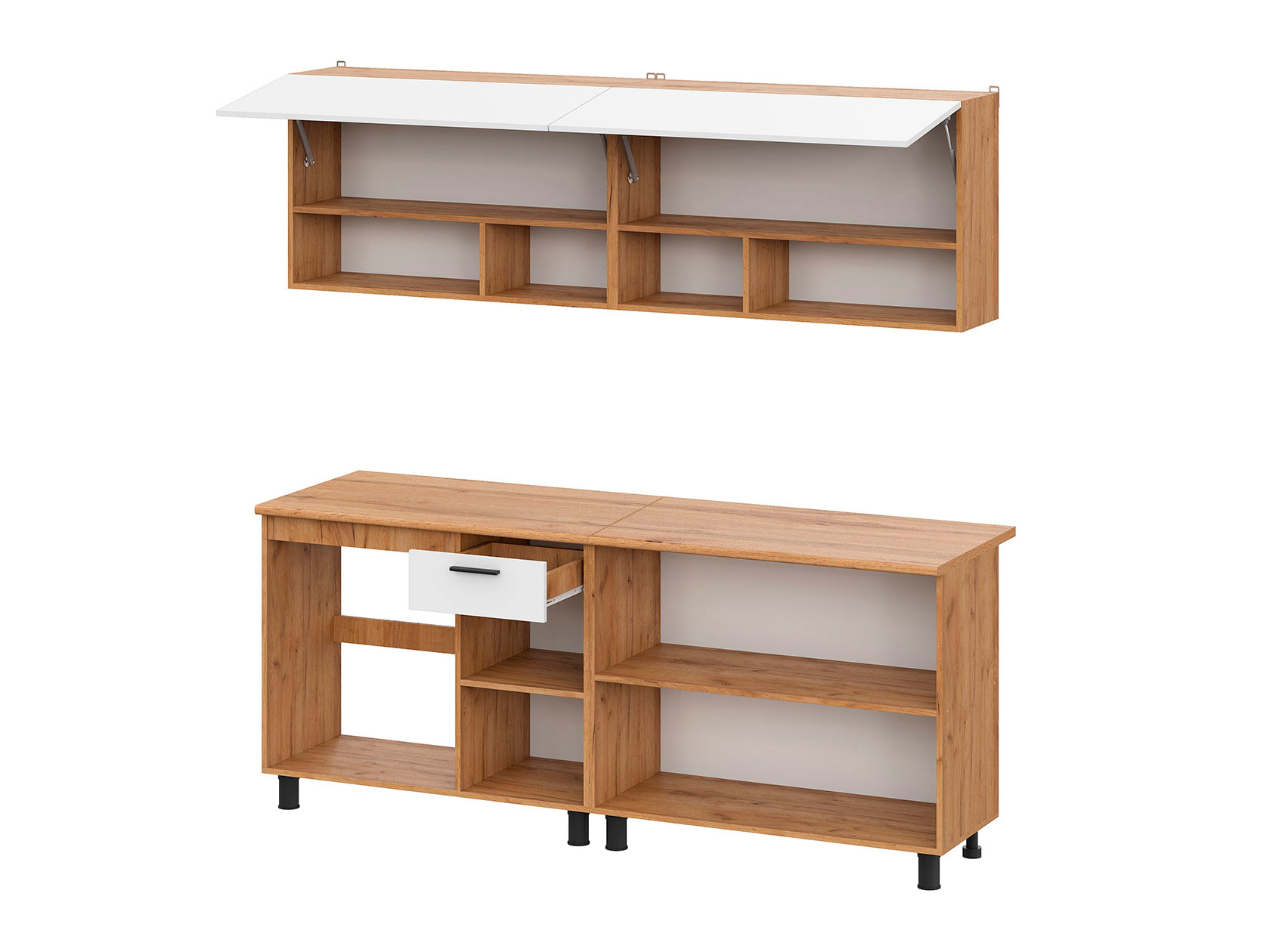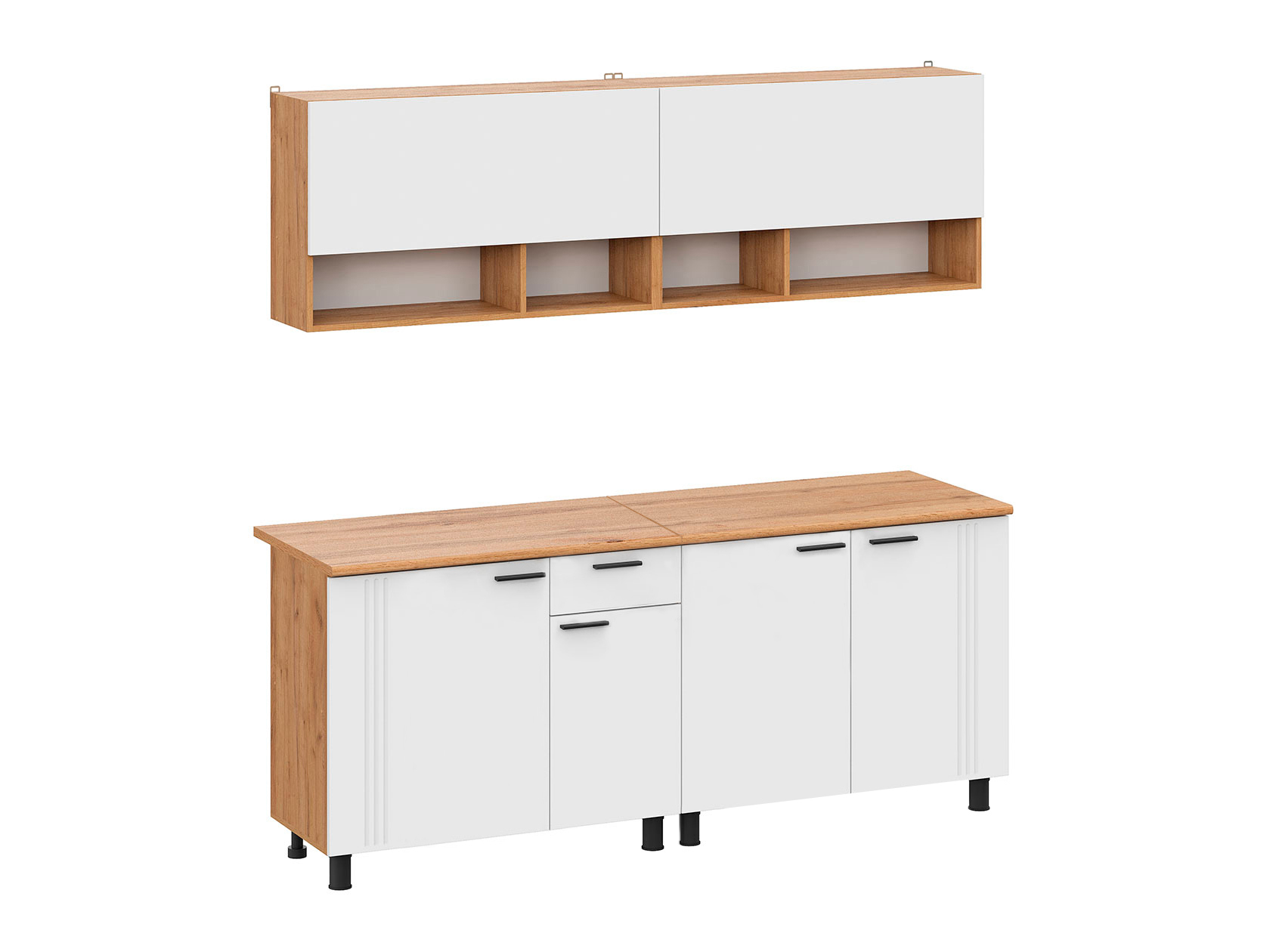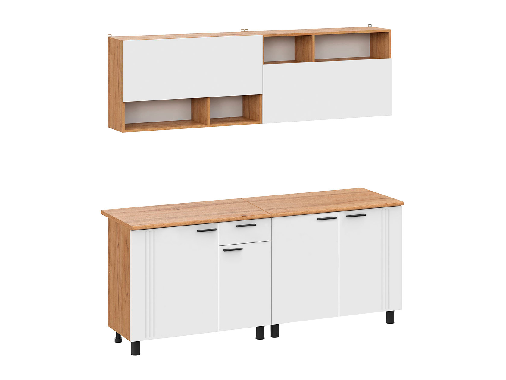 Обратите внимание, мойка и стеновая панель в комплект не входят, их необходимо приобрести отдельно. Столешница составная, состоит из 2 частей.