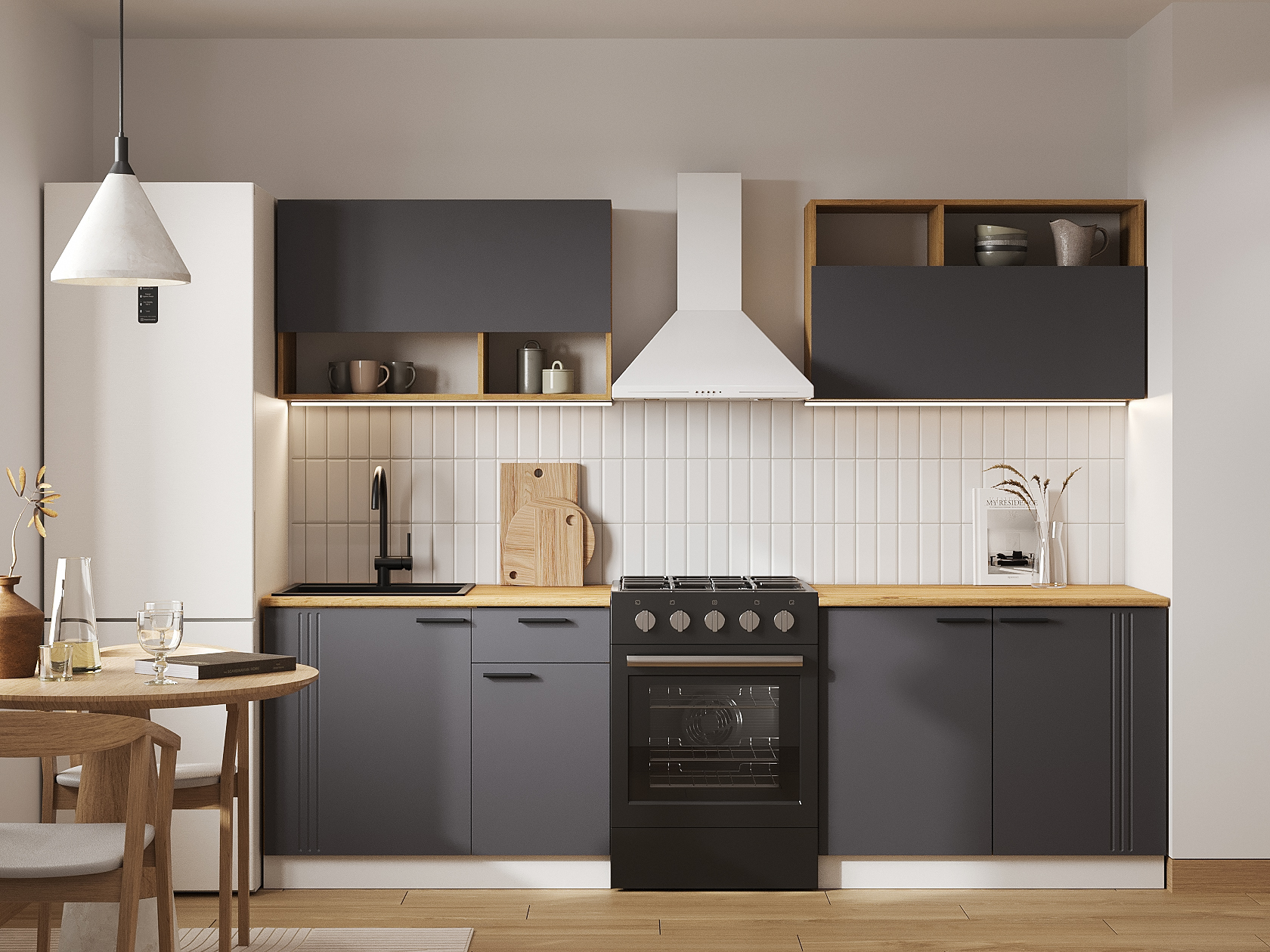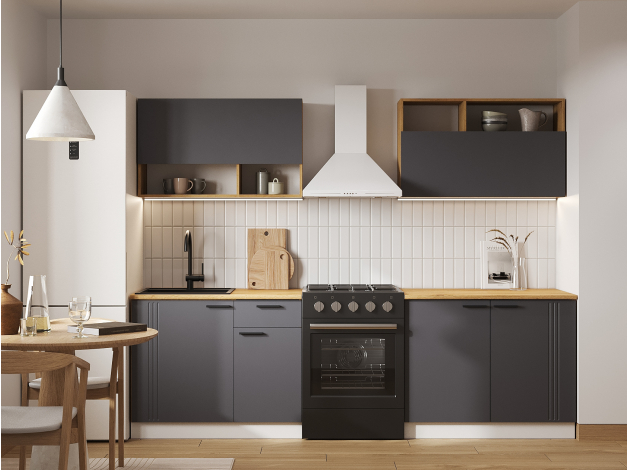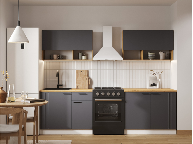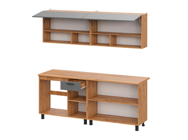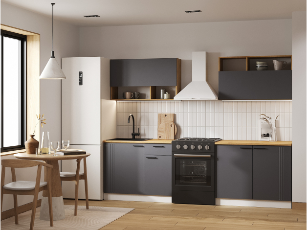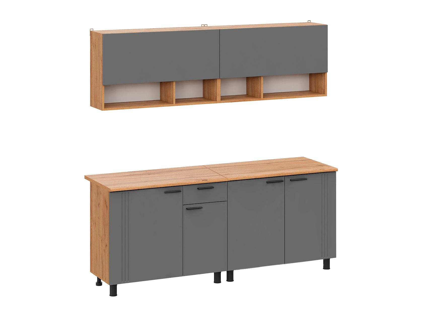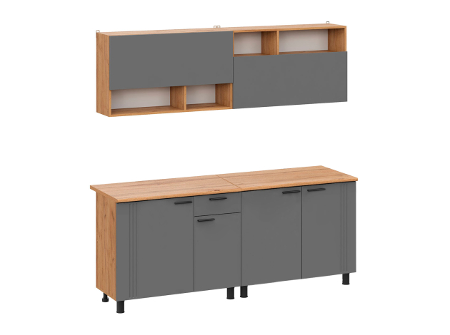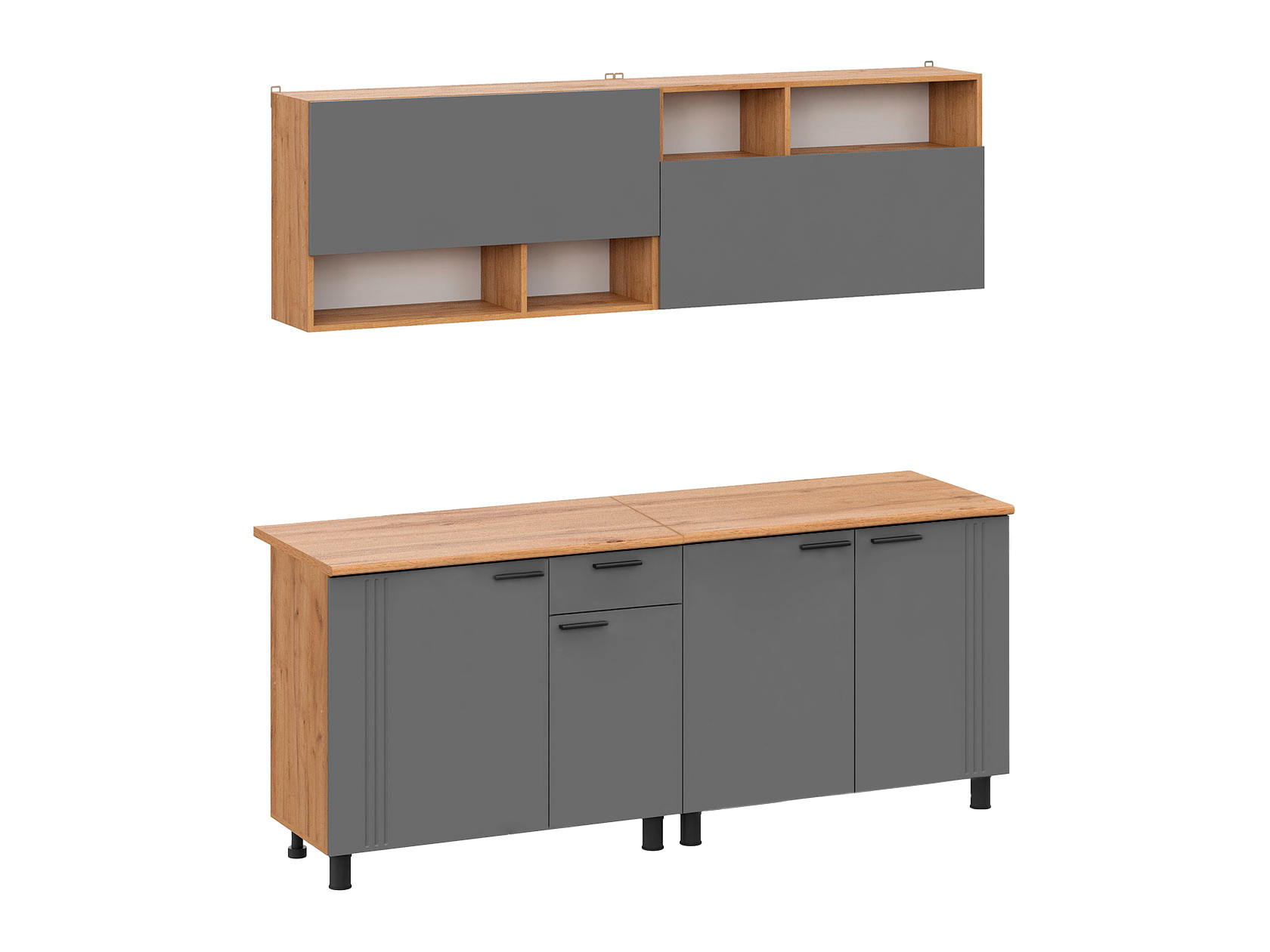 Кухонный гарнитур Брук 200 см Дуб золотой / Графит / Дуб Вотан