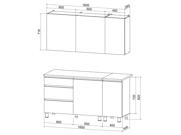 - Столешница: 2,6 х 40 х 60 см.