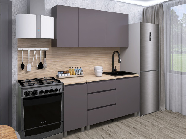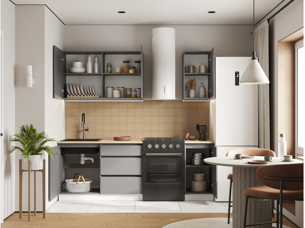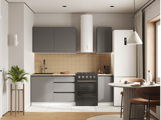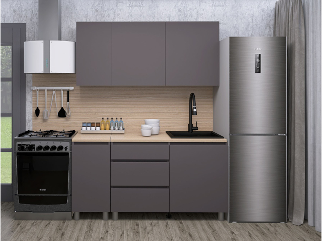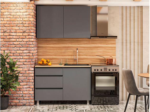 Кухонный гарнитур Денвер 160 см — идеальное сочетание лаконичного дизайна и функциональности. На гладких фасадах нет лицевой фурнитуры: дверцы и ящики открываются за выступающий край. Такое решение облегчает уход за поверхностью и делает гарнитур более комфортным. Оптимально подобранные элементы организуют удобную систему хранения даже на небольшой кухне.