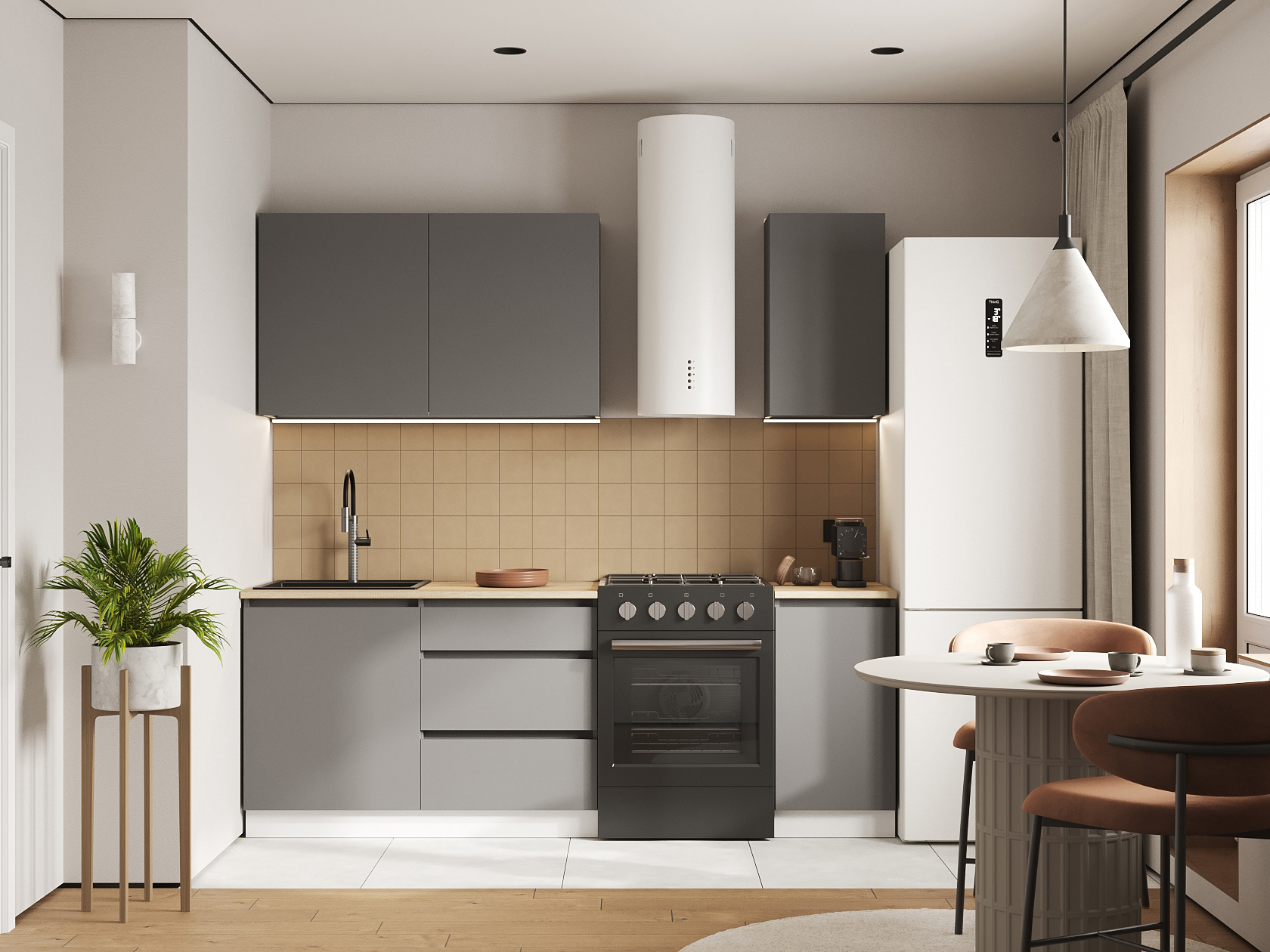 Обратите внимание, стеновая панель, плинтус, мойка и сушилка для посуды в комплект не входят.