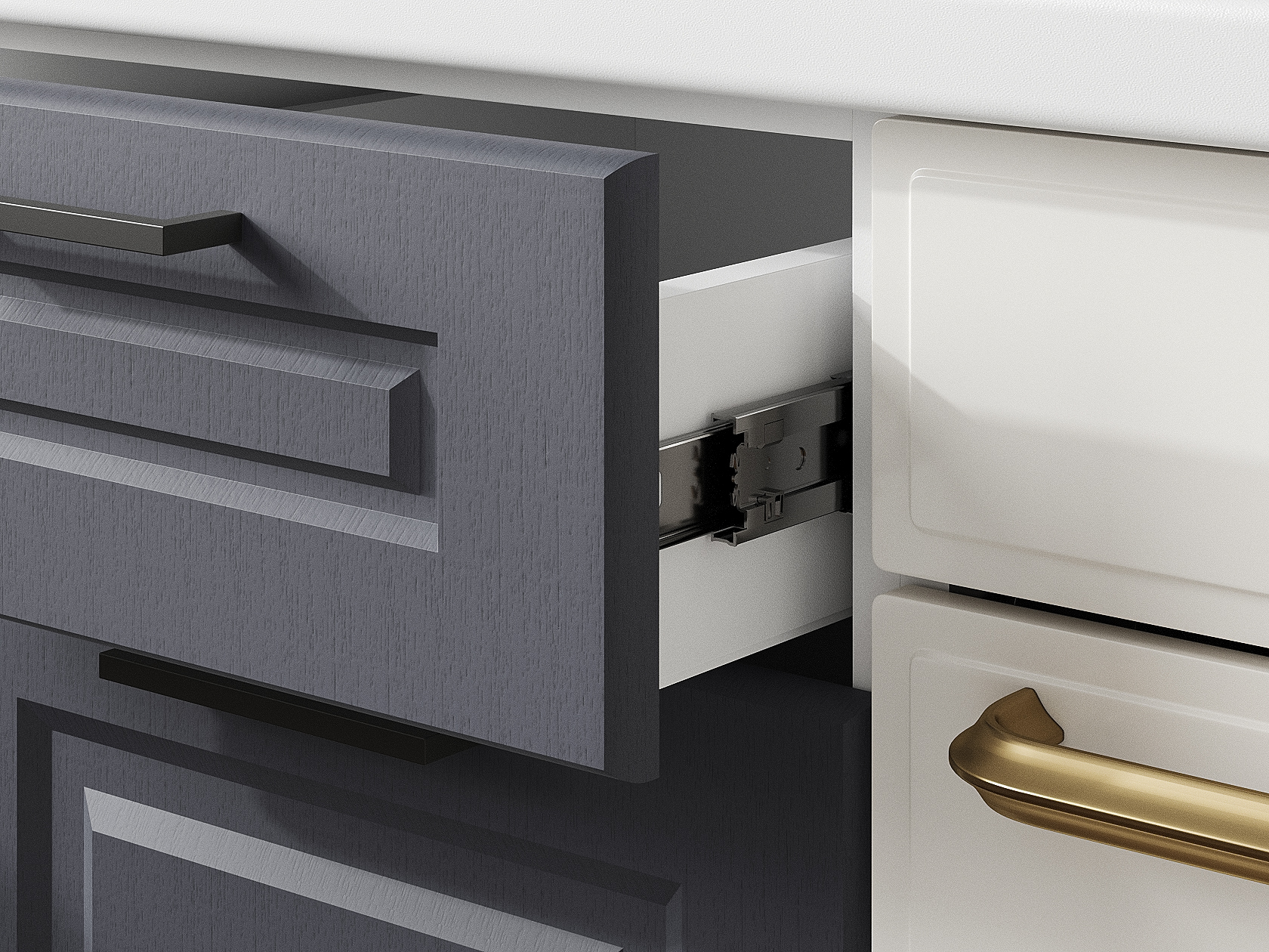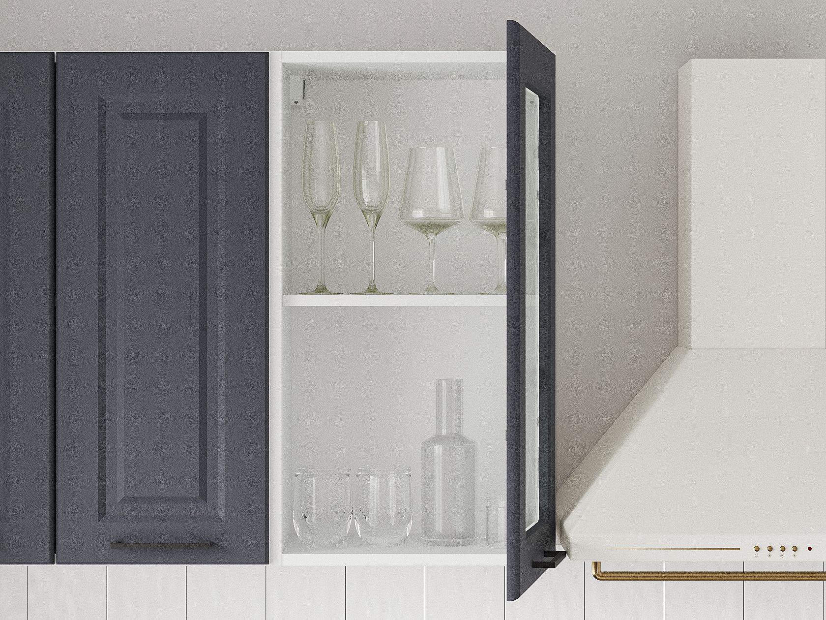 Кухонный гарнитур Грейвуд 200 см Белый / Шато индиго со стеклом