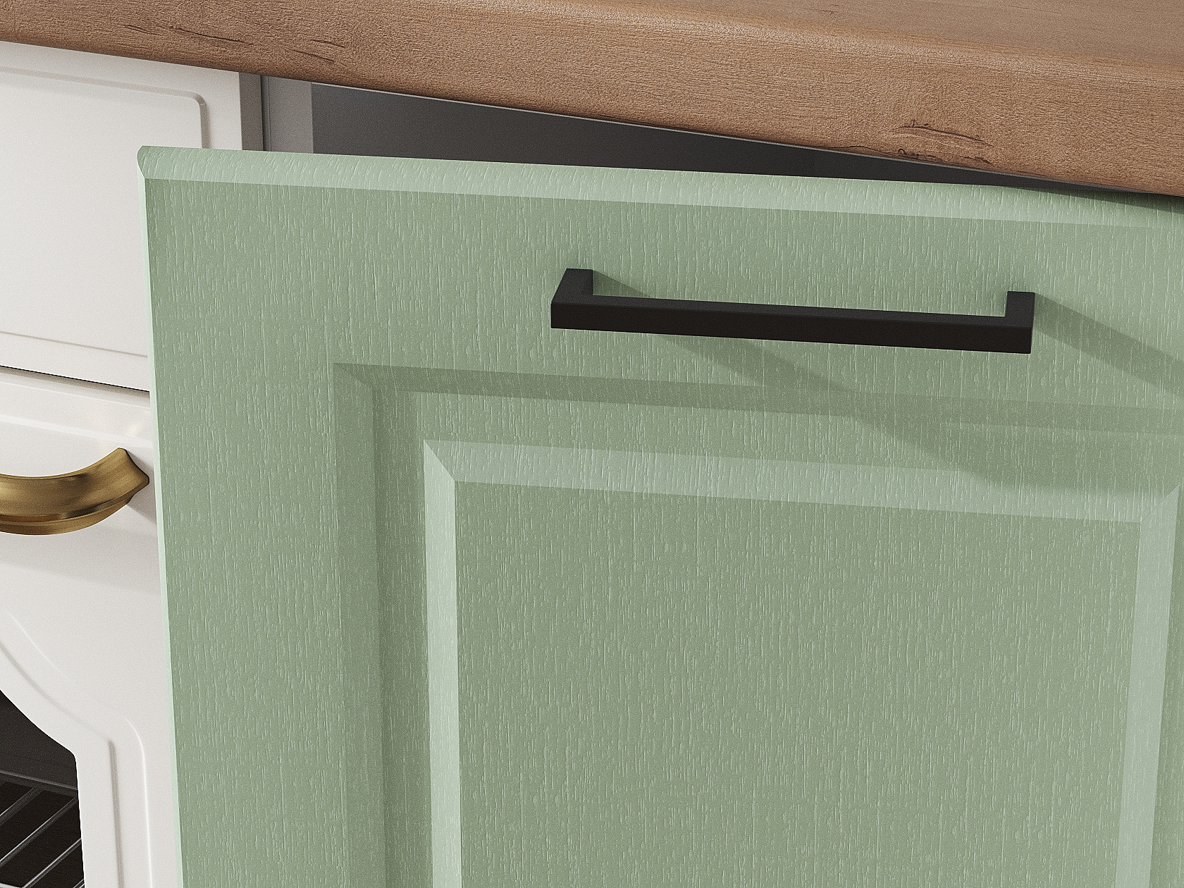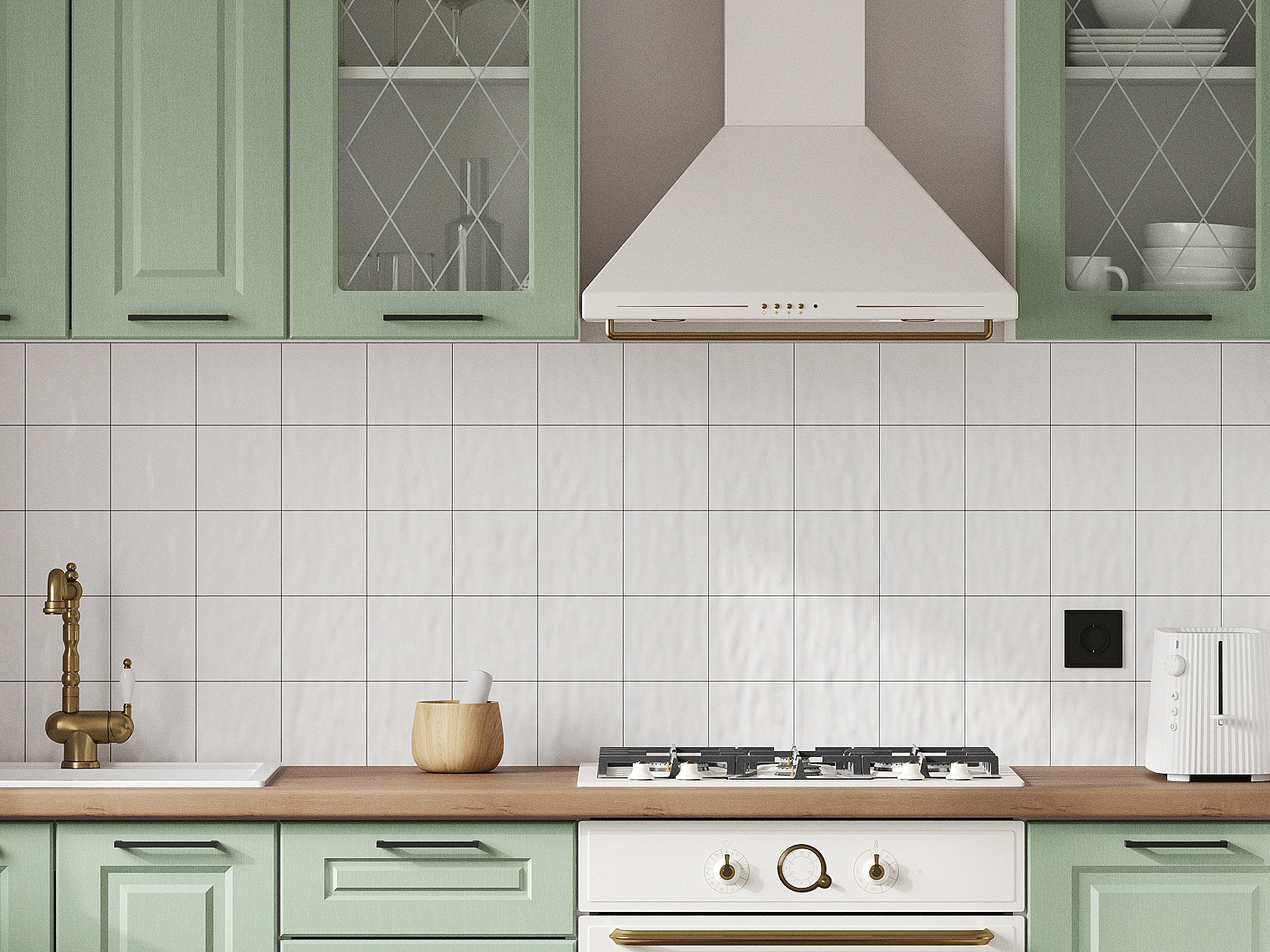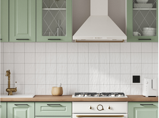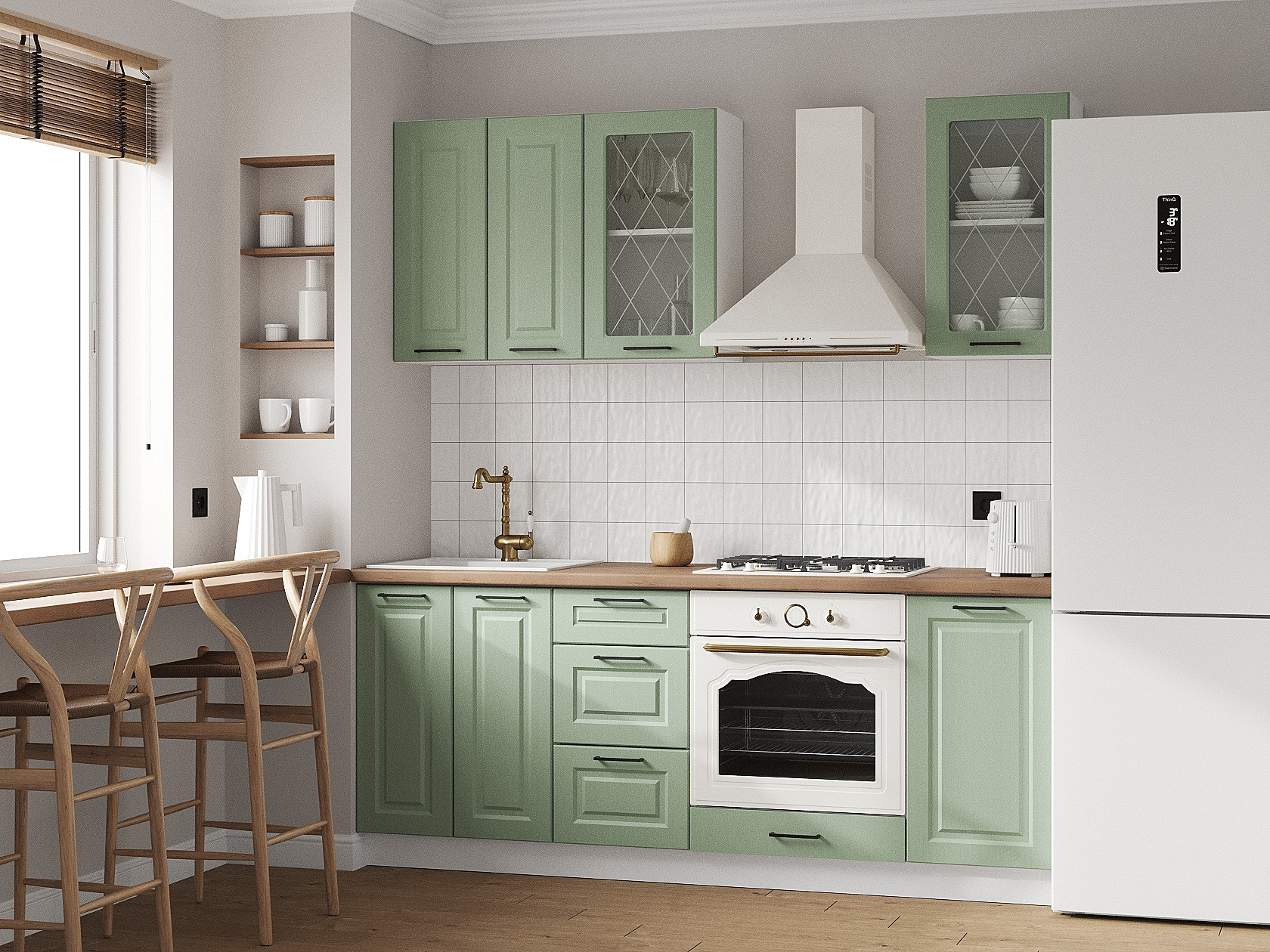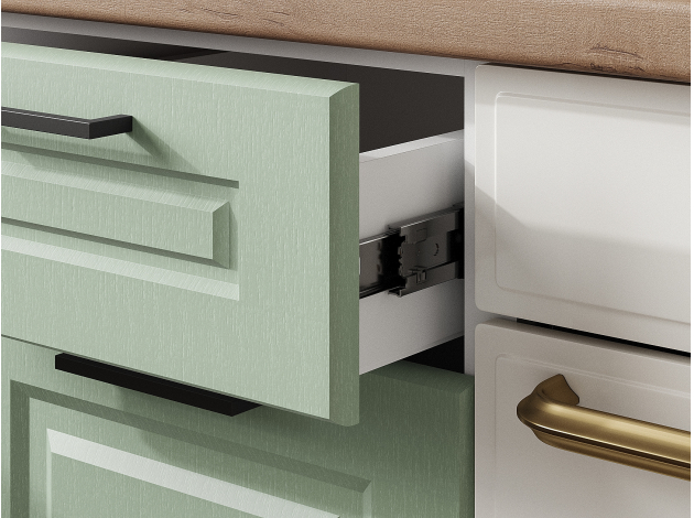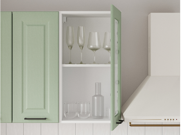Кухонный гарнитур Грейвуд 200 см Белый / Шато мята со стеклом