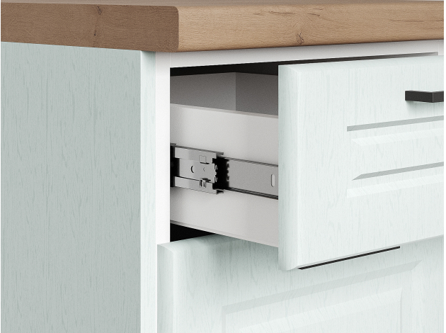 Фасады с внутренней стороны имеют базовые несквозные отверстия под ручки 12,8 см, при желании, можно установить ручки другого размера, просверлив отверстия на фасаде по месту.
