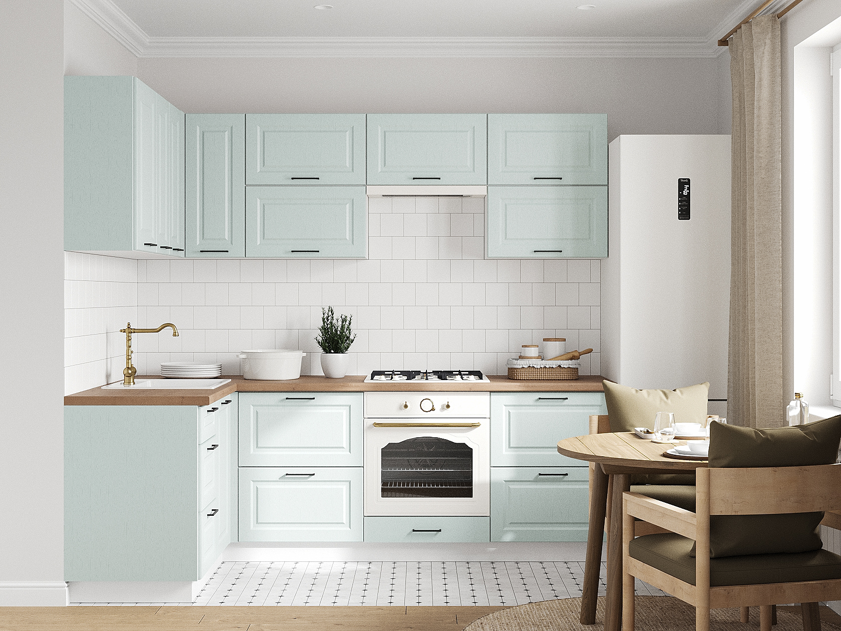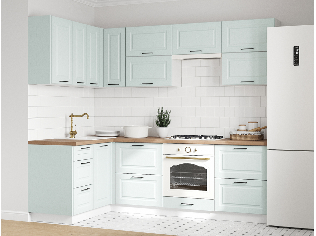 Кухонный гарнитур Грейвуд 240х140 см предусматривает всё необходимое для размещения бытовой техники, удобного приготовления пищи и хранения поварских принадлежностей. Угловая конструкция позволит оптимально использовать доступное пространство. Откидные дверцы антресольных шкафов оснащены газлифтом, который фиксирует их в открытом положении и обеспечивает плавное закрывание.