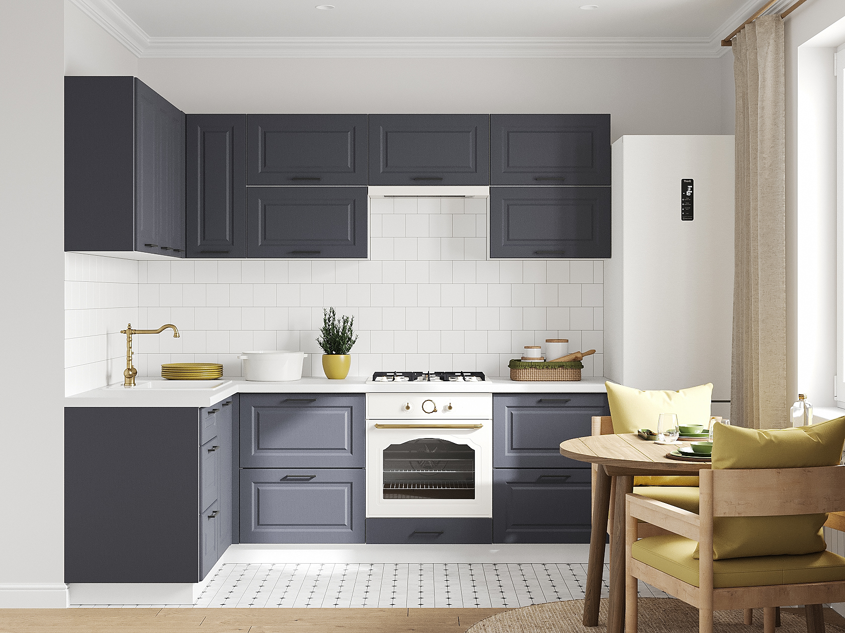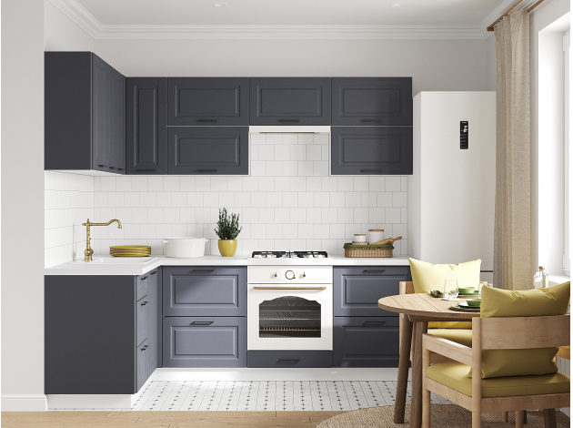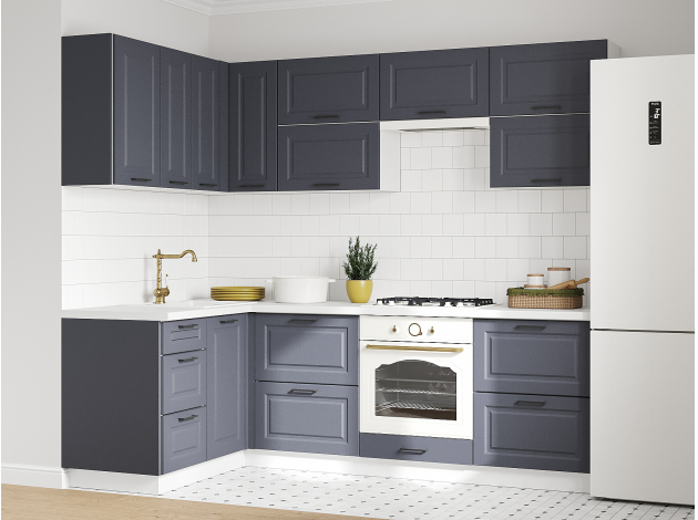 Кухонный гарнитур Грейвуд 240х140 см Белый / Шато индиго