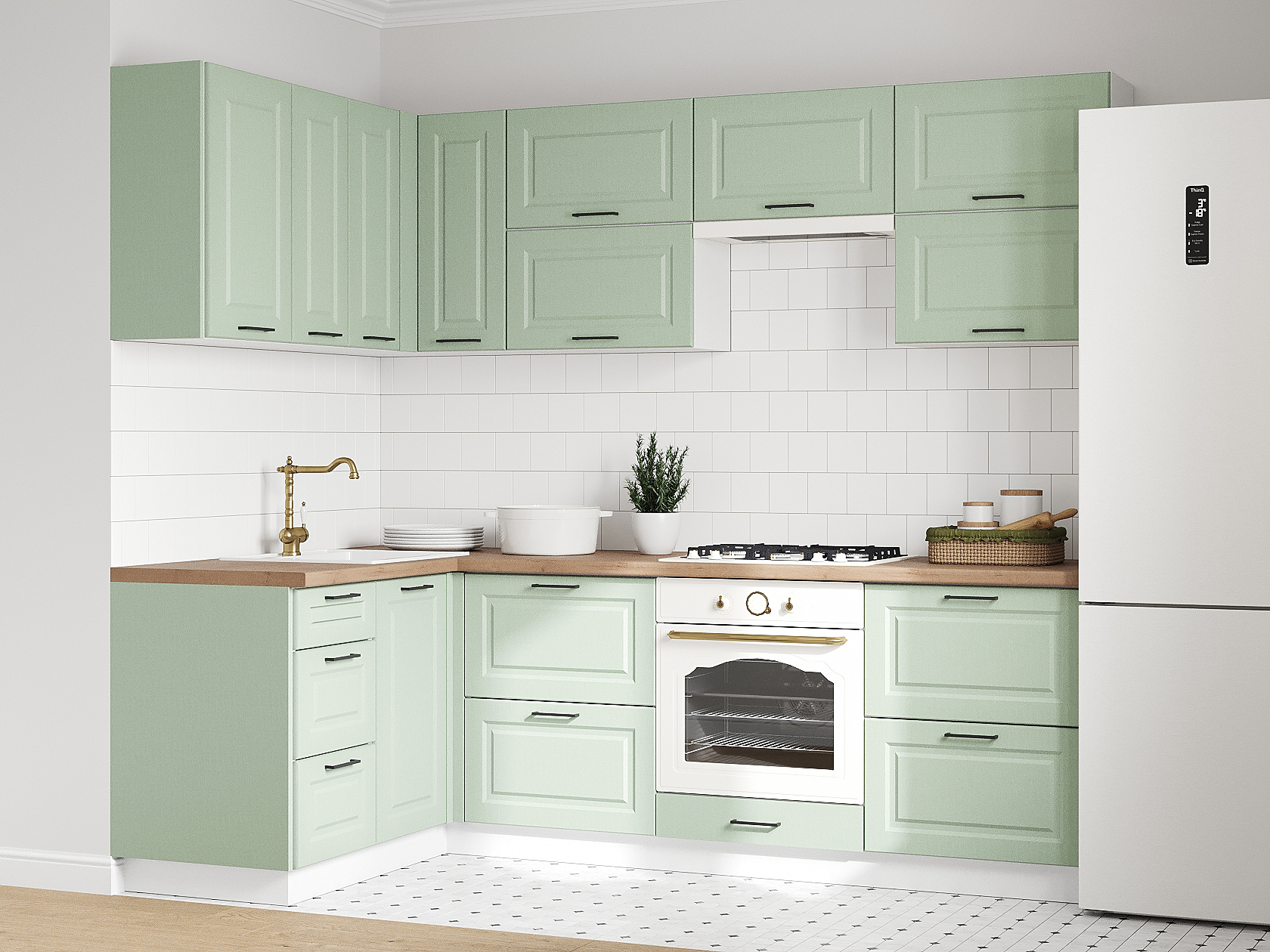 Кухонный гарнитур Грейвуд 240х140 см Белый / Шато мята