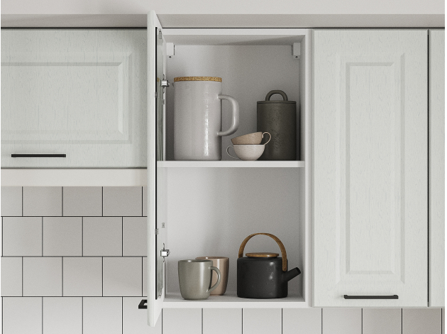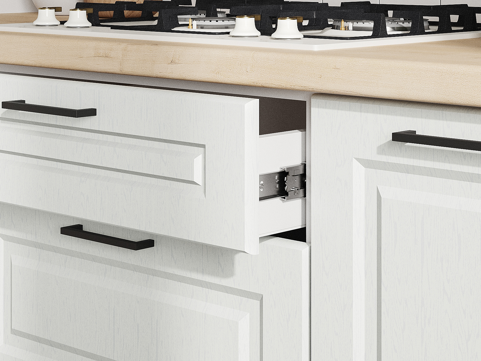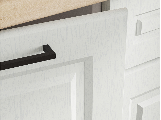 Фасады с внутренней стороны имеют базовые несквозные отверстия под ручки 12,8 см, при желании, можно установить ручки другого размера, просверлив отверстия на фасаде по месту.
