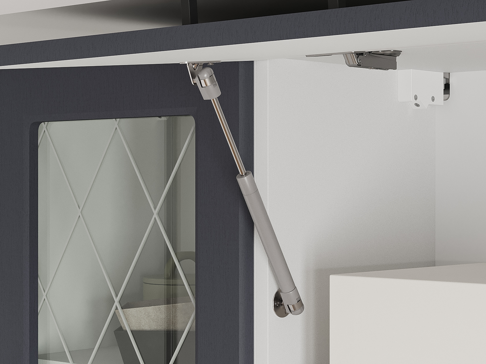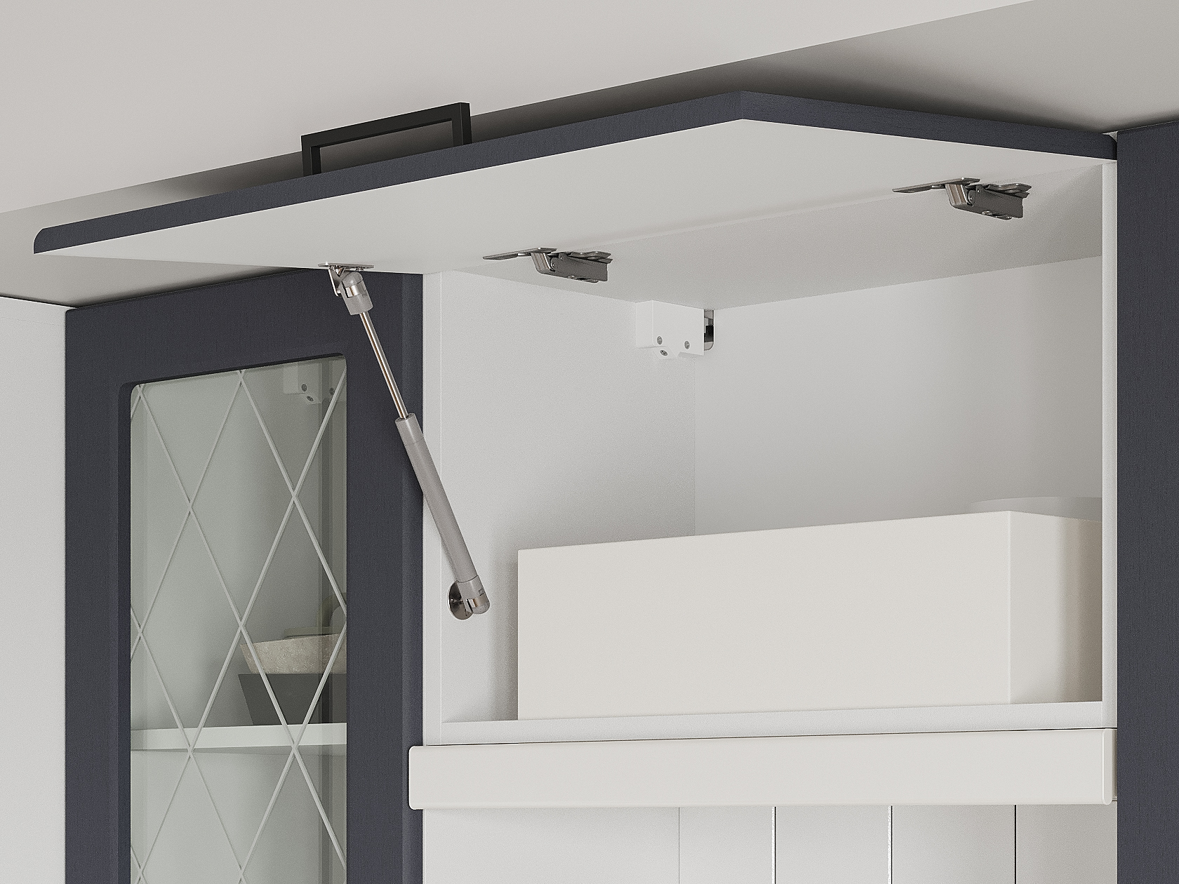 • Фурнитура дверцы антресольного шкафа: подъемник с газовым кронштейном.