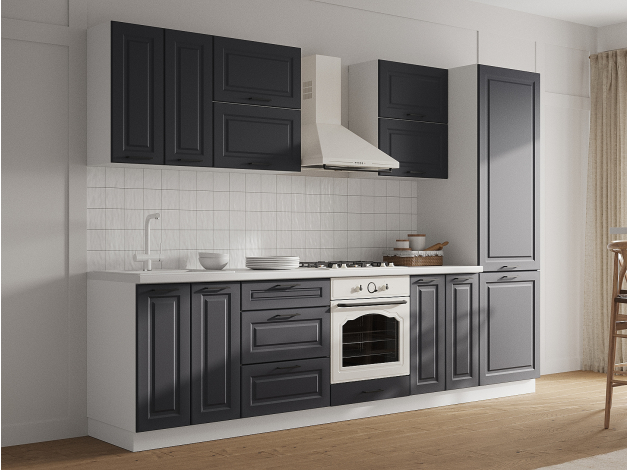 Кухонный гарнитур Грейвуд 300 см Белый / Шато индиго